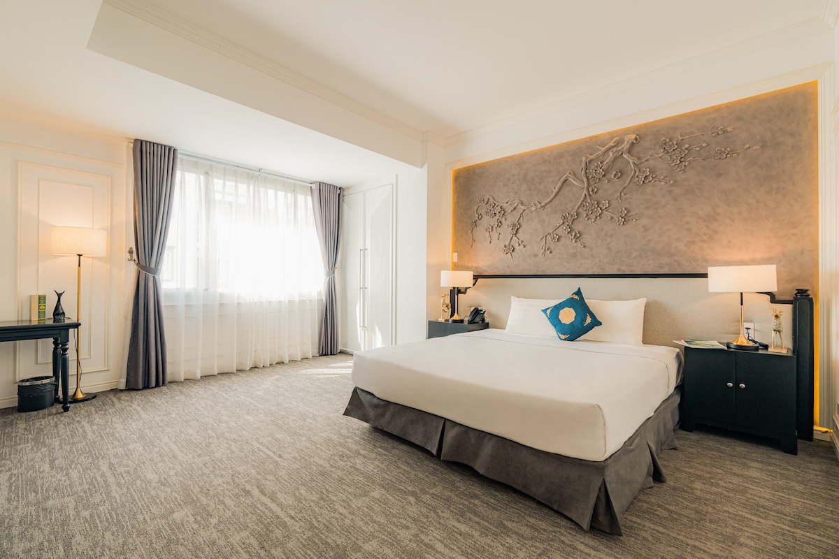 Set on a fresh, tree-lined street in the heart of Saigon, this residence stands out instantly. The building feels nicely designed, and the calm, leafy neighborhood keeps everything cool and peaceful while iconic landmarks stay just steps away. Inside, the suite is bright, elegant, and fully renewed, with every detail set for a long, comfortable stay. Open the curtains and the city spreads out in a wide, beautiful view.