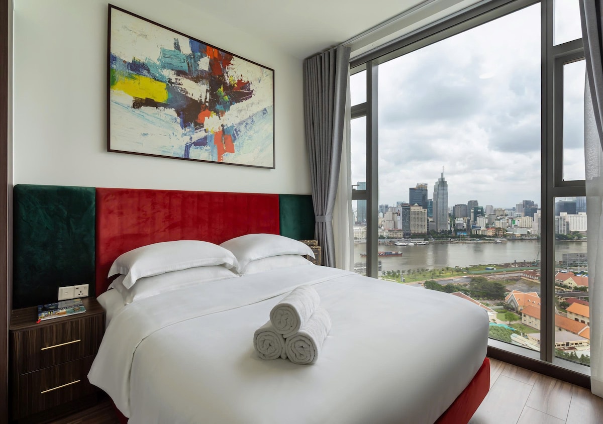 Genesis,2卧室(3张床)+2卫生间,可欣赏Bitexco+河流+城市景观
