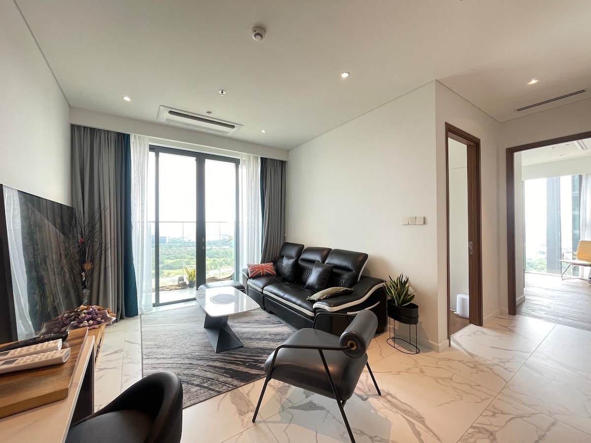 豪华5星级2卧室3床-无边泳池+健身房+中心