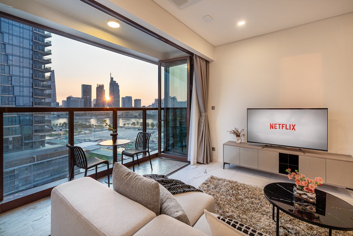 豪华5星级公寓-2卧室2卫生间-河景+无边泳池+健身房