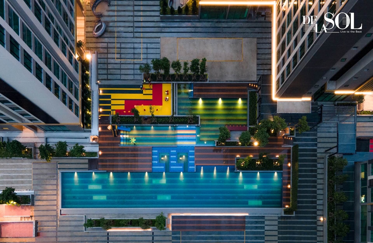 豪华5星级2卧室3床-无边泳池+健身房+中心