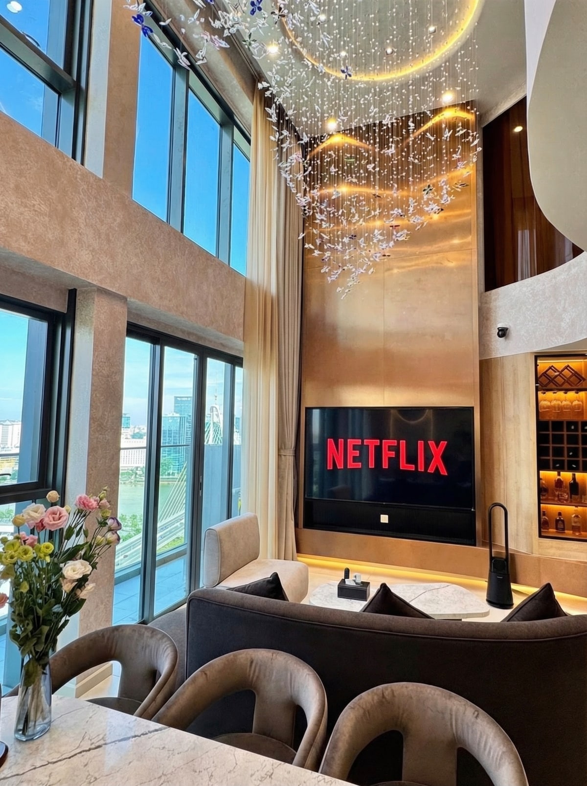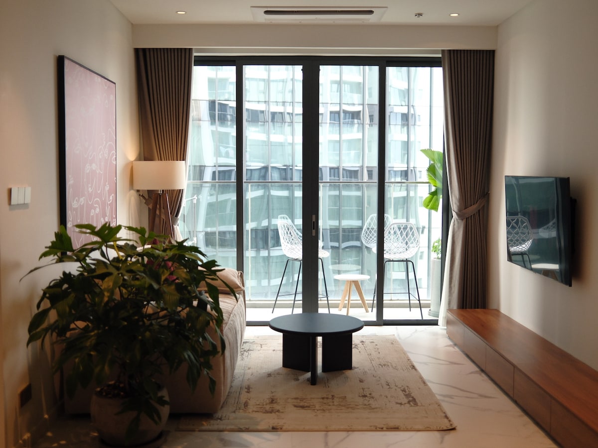 The apartment is beautifully designed in Wabi Sabi style located in D1Mension Residences building, District 1 apartment center, artistic style, high-class resort amenities, special rooftop swimming pool _ spa pool _ sauna room, gym_ showroom, private office, garden fish pond, 4' pizza right in the lobby, garden BBQ area, children's play area, spacious waiting room, All bedroom windows and balconies are airy, unique, luxurious, classy apartment