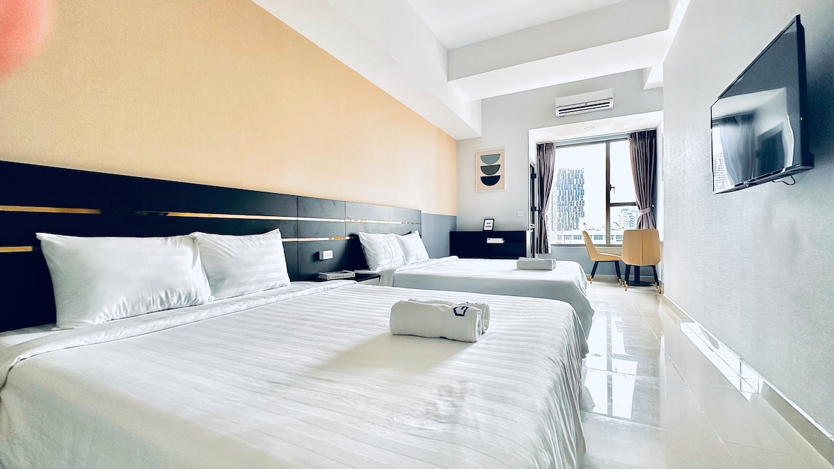 **AIRPORT PICKUP SERVICE AVAILABLE** Stay in our elegant suite at Serenity Sky Villas, District 3 — offering modern comfort at an affordable price. Welcome to a thoughtfully designed three-bedroom apartment where minimalist style meets cozy living. 🛌 Relax on a queen-size bed with premium linens and enjoy a space perfect for unwinding, recharging, or working remotely — all in a serene and stylish setting.