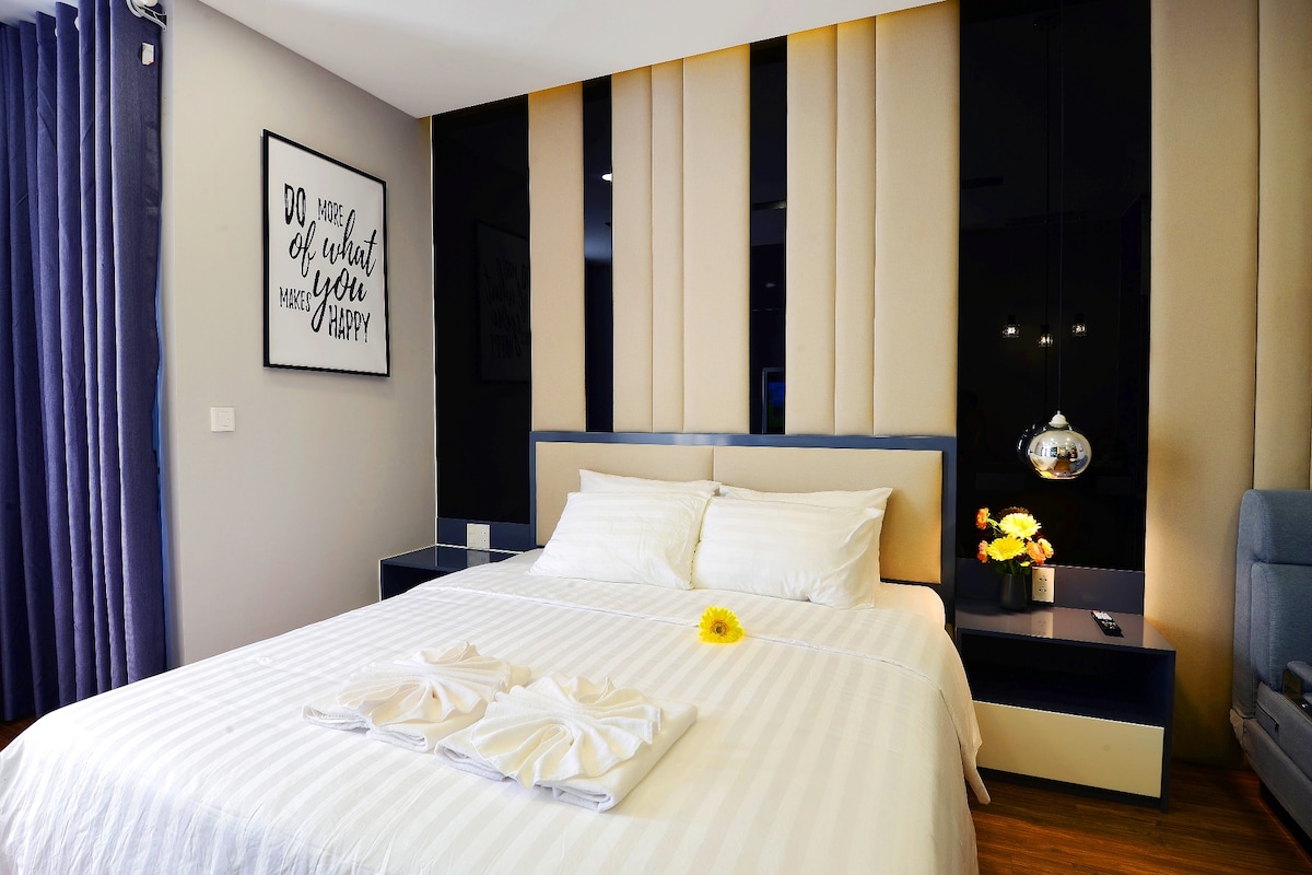 This unique place is designed for a luxury-in-style experience. With a smart sliding door, your living room and bed room are easy connected to maximize spacious 50m2 house. Walking on the BaSon bridge between the condo and D1, you can feel the breeze of Saigon river and spectacular view of the city. By just 5 to 10 min on cab, you can get to city center.