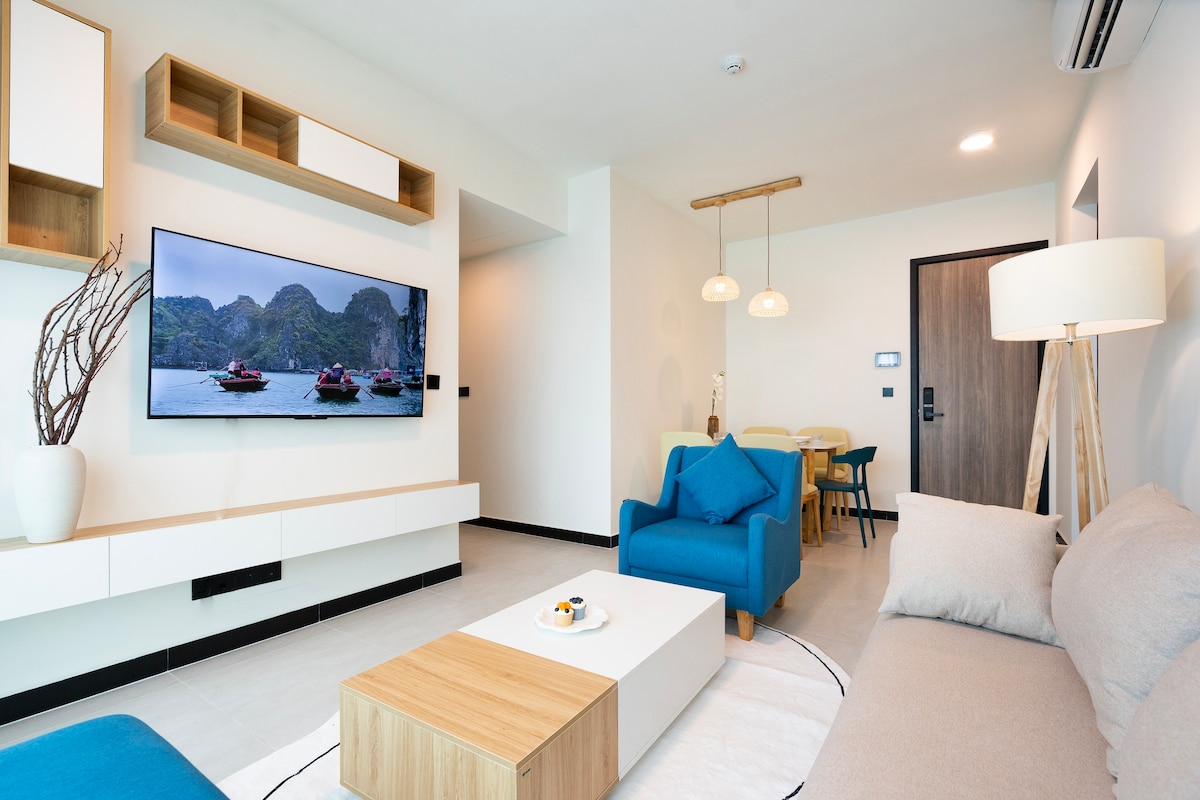 Luxury 5* The Opera Residence Corner Apartment by ChiHome - River View Bason District 1, The LandMark 81, The Galleria, The Mett Office, District 2 Sala Thiso Mall. - Tháp B, Scala, Level 1x căn số 10 - Diện tích: 70m2 (căn góc) - Bao gồm 2 phòng ngủ, 2WC, thoải mái ở từ 2-4 người. - Tivi thông minh 65inch với Netflix và YouTube - Sofa, ghế Armchair, bàn trà. - Bàn ăn 4 ghế - Đồ dùng nấu ăn đầy đủ - Internet không dây tốc độ cao có sẵn - Điều hòa nhiệt độ cho cả nhà - Ra vào tòa nhà 24/7