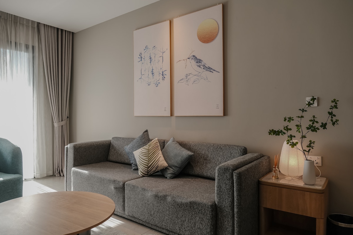 Căn hộ được thiết kế đẹp mắt theo phong cách Wabi Sabi nằm ở tòa nhà D1Mension Residences, trung tâm Quận 1, phong cách nghệ thuật, tiện nghi nghỉ dưỡng đẳng cấp hồ bơi trên cao đặt biệt _hồ tắm spa_ phòng xong hơi, phòng tập thể dục_phòng họp, phòng làm việc riêng,Hồ cá sân vườn, piza 4’ ngay sảnh, khu BBQ sân vườn, khu vui chơi trẻ em,phòng chờ rộng, tất cả cửa sổ phòng ngủ và ban công đều thoáng mát, căn hộ độc đáo, sang trọng, đẳng cấp