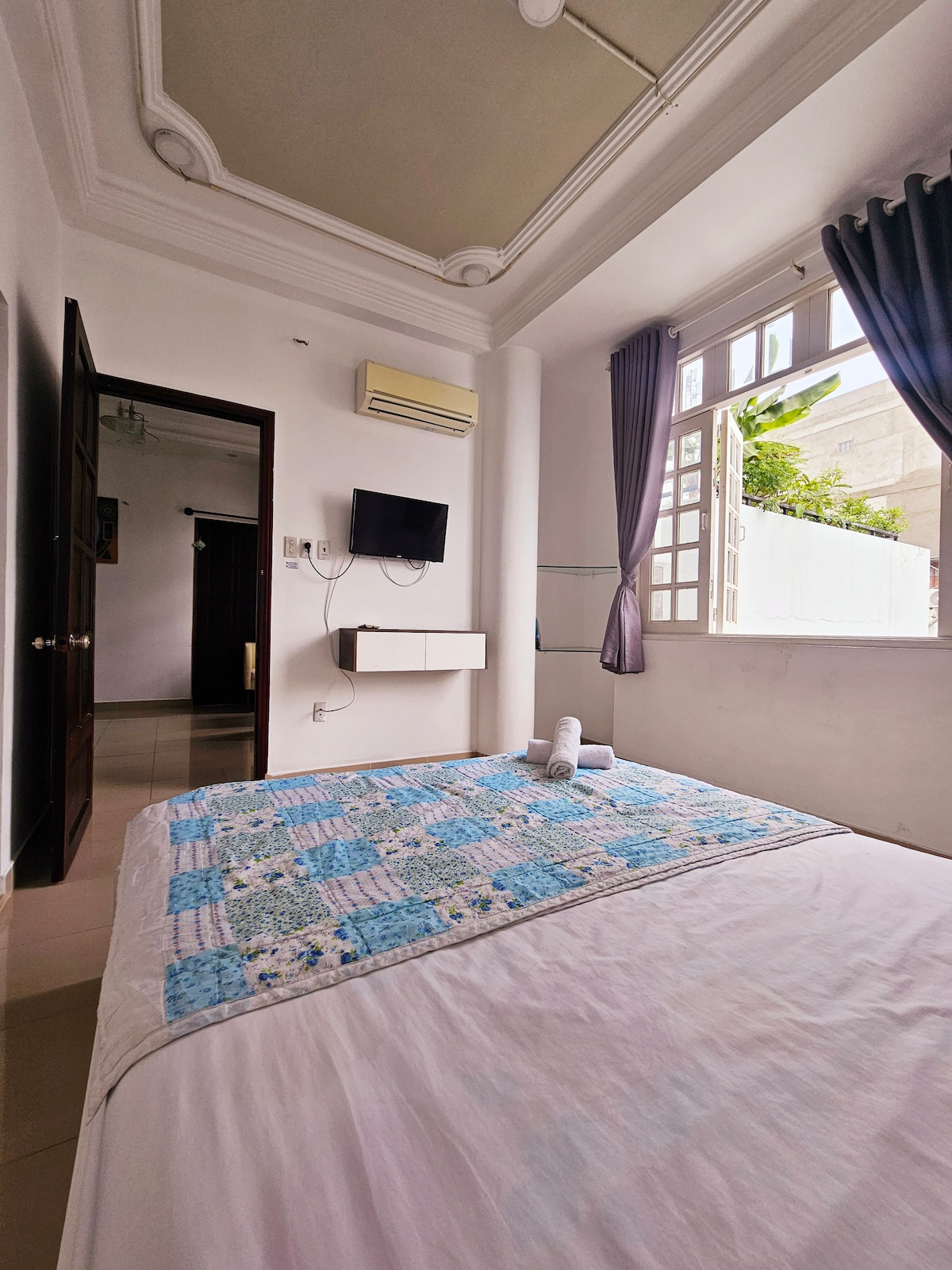 It's a cozy room right at the city center. Location is very convenient with many coffee shop, restaurant, street food, gym, etc. nearby. - Add: Nguyen Dinh Chieu st, District 3 - 5 mins to District 1 - 1 double bed, soft mattress & pillow to sleep - Elevator, air conditioner, TV & cable, wifi, wardrobe, desk, chair, sofa, safe box... - Kitchen: fridge, kettle, induction cooker, pot, bowl, cup, dish - Private bathroom: hot shower & a bathtub - FREE cleaning & motorbike parking - Friendly staffs