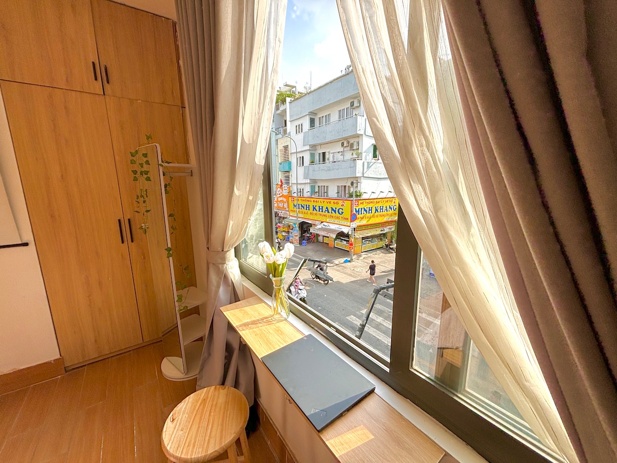 🏠 Studio is a formal, cozy space on the third floor. 🍳 Fully equipped kitchen in the room: 1 microwave, 1 fridge, 1 sofa bed, 1 office chair + desk. Cleaned once a week. 🚪 Walkway is a separate wooden staircase upstairs. 🌬️ Fresh air ventilation fan and a small ventilation window allow outside air to flow into the room, keeping it airy and well-ventilated. 🌿 Large terrace available on the top floor. 📍 Nearby Supermarket, coffee shop, restaurant, Nhieu Loc canal for walking and exercise.