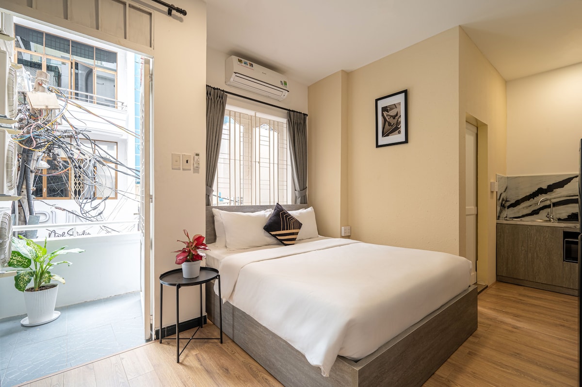 - A stylish studio of Mersey Ben Thanh Saigon Apart'Hotel - a member of HoLo & Mersey Hospitality. - LARGER GROUP can book other rooms to stay here together. - Close proximity to Ben Thanh Market, Nguyen Hue, Pham Ngu Lao & Bui Vien Area - New& Stylish designed Studio - Surrounded by all tourist attractions - Private kitchen & Private bathroom - Potential for noise - No Smoking - Pet are not allowed - Deposit & Utility Bills for long-stay to be informed at the time of inquiry