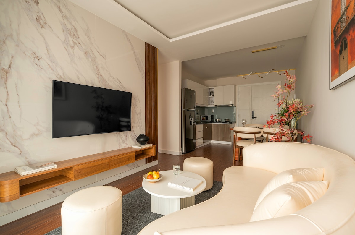 Located right at Turtle Lake - one of the ancient Saigon's symbols - the apartment is your oasis of calm and coziness right amidst the chaotic hubbub of the city center. Soothing and tranquil yet stimulating, every corner reflects designer touches, Vietnamese craftsmanship, and eco-friendly considerations.