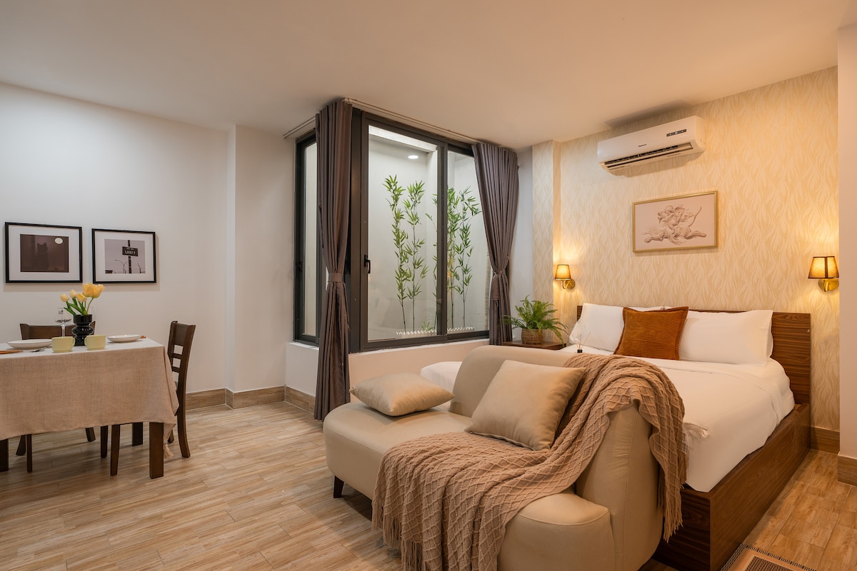✨Enjoy airy living with stunning 🌆 panoramic views of Saigon. This elegant home blends 🇪🇺 classic European charm with 🌏 modern Asian style. Perfectly located near Tan Dinh Market, the Pink Church and just 20 minutes away from the Airport, 10 minutes to the heart of District 1. Set in a prime location surrounded by local eateries, cafés, spas, and markets—just steps from iconic sights for the perfect city stay!