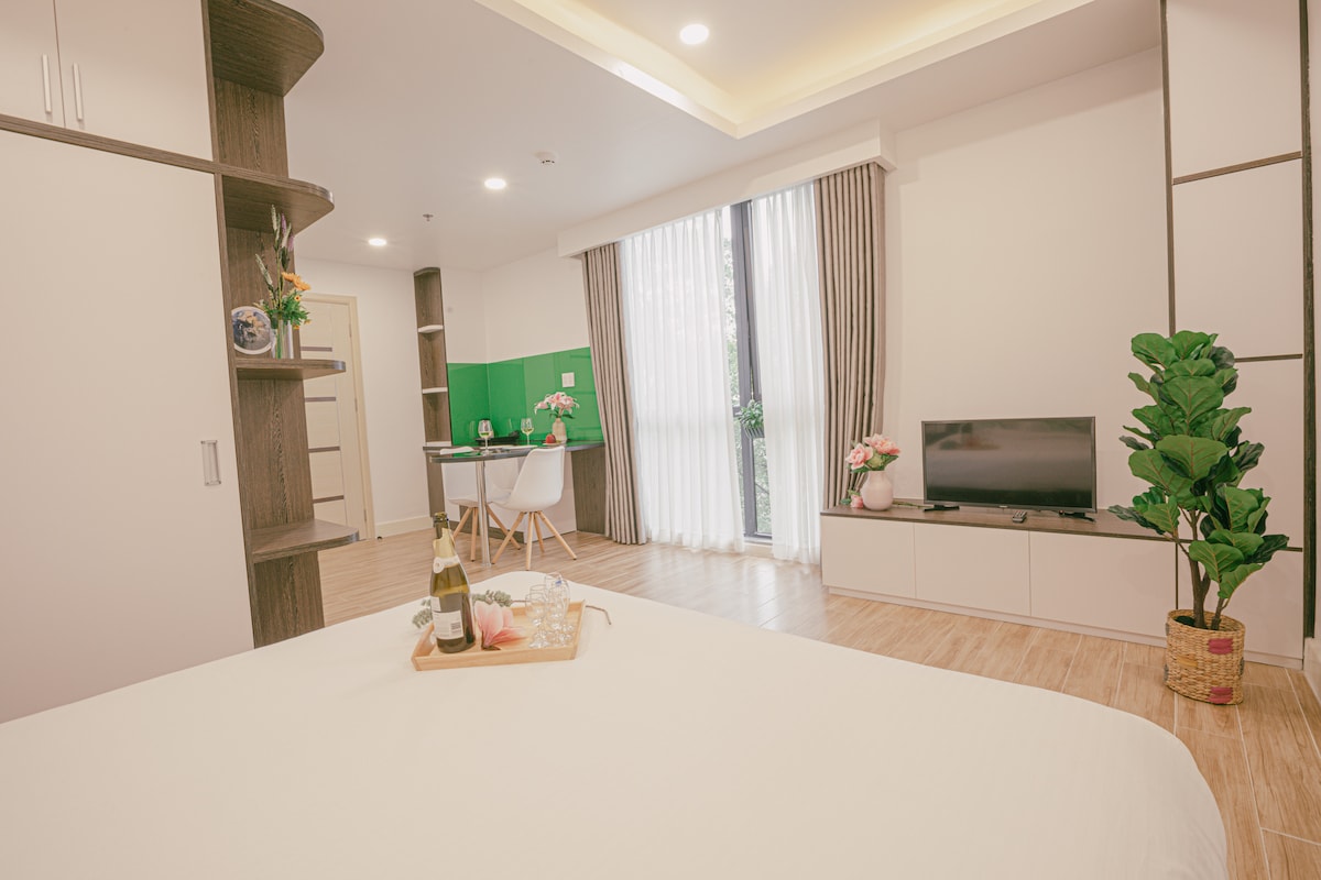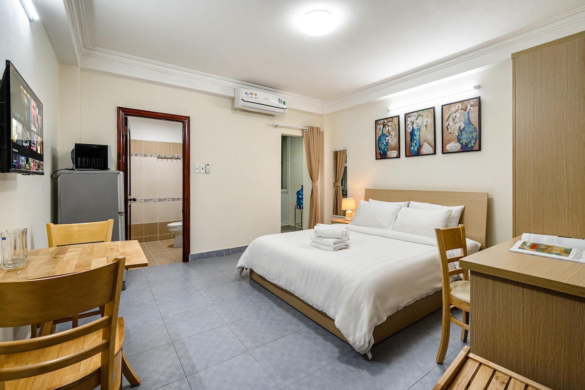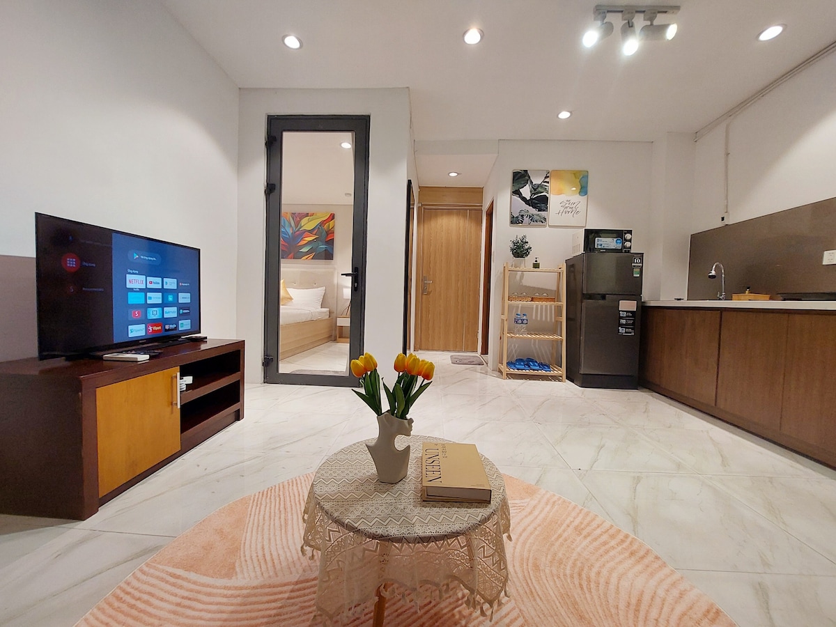 Let's enjoy a stylish experience at the city center! It's spacious, clean & has the natural light. The private kitchen & bathroom are separated with the sleeping space. - 1 soft bed to sleep well - Balcony with nice city view - Elevator, air-conditioners, couch, wardrobe, dinning table - Fridge, microwave, rice cooker, induction stove, water kettle, cooking utensils - Smart TV connects fast wifi - FREE cleaning, laundry+parking - Access 24/7 & safe #Address: Nguyen Phi Khanh street, District 1