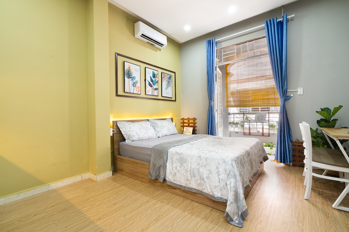 Welcome to our brand-new studio combining cozy and boho style. Your family will be close to everything when you stay at this centrally-located place - Located in the heart of HoChiMinh, it's quiet both day and night because of being at 4th floor - Owning an awesome view from the large street-side window. Looked like the photos, full of necessary amenities, outstanding by full HD projector - No curfew - 24/7 accessibility with clear instruction - High-speed and private WiFi, fully air-conditioned