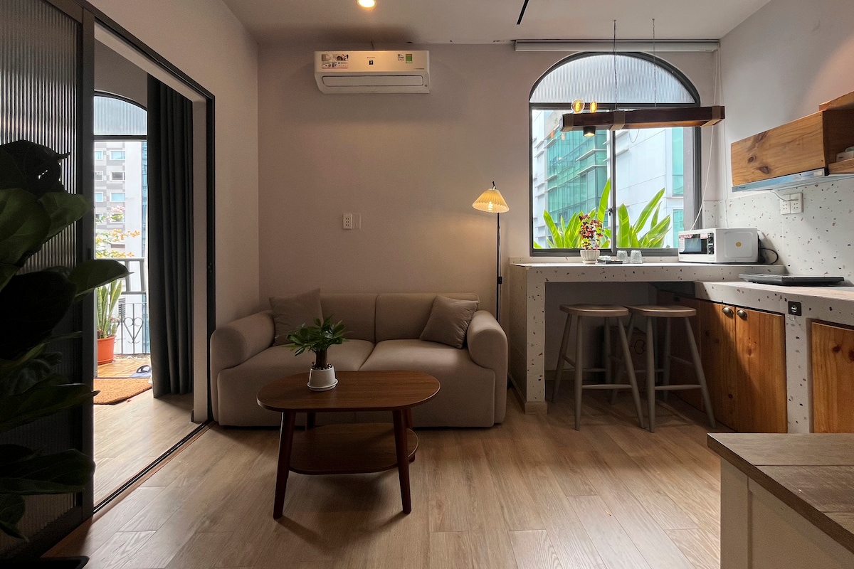Established in 2023, We offer High Quality Short and Long Let Serviced Apartments located right on a busy street with famous cafes, restaurants, Circle K and convenient stores near by and just a few minutes walk to Bui Vien walking street, Tao Dan Park. Cost-effective compared to hotels, we provide 1 BR serviced apartments with privacy, modern style, kitchen, balcony, soundproof door & windows, desk space to work, rooftop garden, elevator, regular cleaning and the comforts of a “Home-from-Home”.