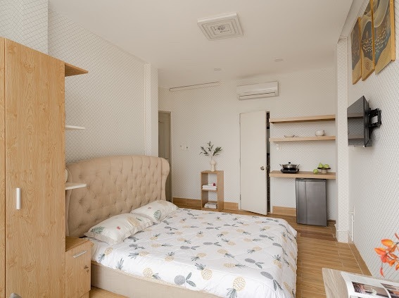 Không gian sống tiện nghi với bếp rộng liền kề phòng ngủ – Tối ưu cho sự thoải mái và tiện lợi Căn phòng được thiết kế hiện đại với không gian bếp rộng rãi, liền kề phòng ngủ, tạo sự thuận tiện trong sinh hoạt hàng ngày. Khu vực bếp mở thoáng đãng, trang bị đầy đủ thiết bị. Phòng ngủ được bố trí liền kề, tách biệt vừa đủ để đảm bảo sự riêng tư nhưng vẫn kết nối hài hòa với không gian chung. Cửa sổ lớn đón ánh sáng tự nhiên, giúp căn phòng luôn thoáng mát và tràn đầy sức sống.