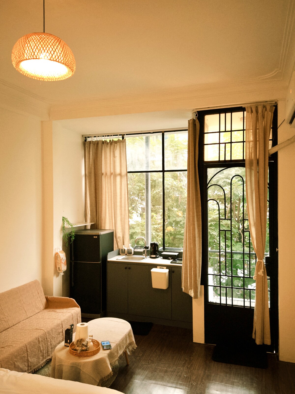 Clouden — a minimalist urban retreat in the heart of Saigon’s District 1. This stylish studio offers skyline and garden views, a 100” 4K projector, full kitchen, laundry, and super-fast WiFi. Just steps from Bui Vien and Ben Thanh Market, it’s central yet peaceful. Enjoy a rooftop terrace, modern amenities, and keyless entry. Perfect for couples, solo travelers, and small families seeking comfort, convenience, and tranquility after exploring the city’s vibrant culture.