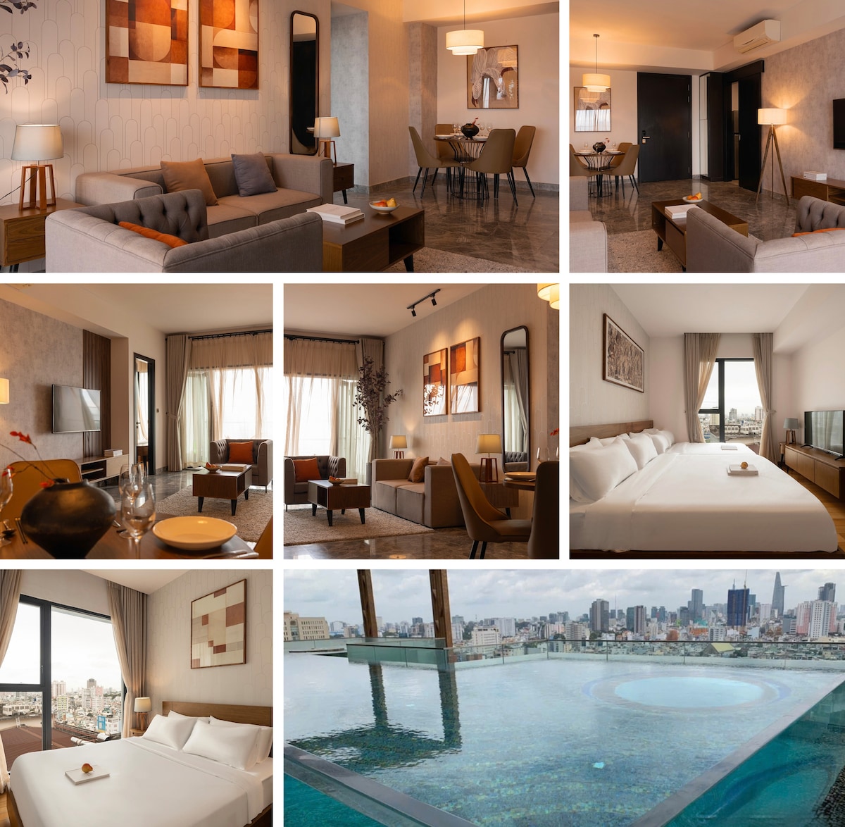 This 80m² 5🌟 luxury apartment is located in District 1, a prime location near Bui Vien (500m), Ben Thanh Market (1km) and Nguyen Hue Walking Street (1.5km). The apartment has 2 bedrooms (3 beds, including 2 King beds 1m8x2m and 1 Queen bed 1m4x2m), 2 bathrooms and full facilities such as saltwater infinity pool, gym, sauna and steam room. Enjoy the cozy feeling of home in this modern building.
