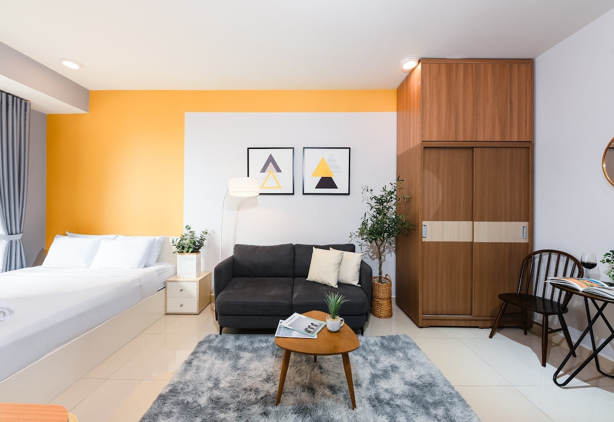 A beautifully designed studio apartment with everything you need, centrally located but hidden away just enough for a peaceful night of sleep away from the heavy city noise. Great for travelers who want to explore Saigon and looking for quality comfort and a more local experience. - Beautiful swimming pool - Free fast wifi, Cable TV - Free amenities for your living: washer, dryer, AC, fridge, hot water - Kitchen with enough tools for your cooking. Note: Not provide/support VAT invoices