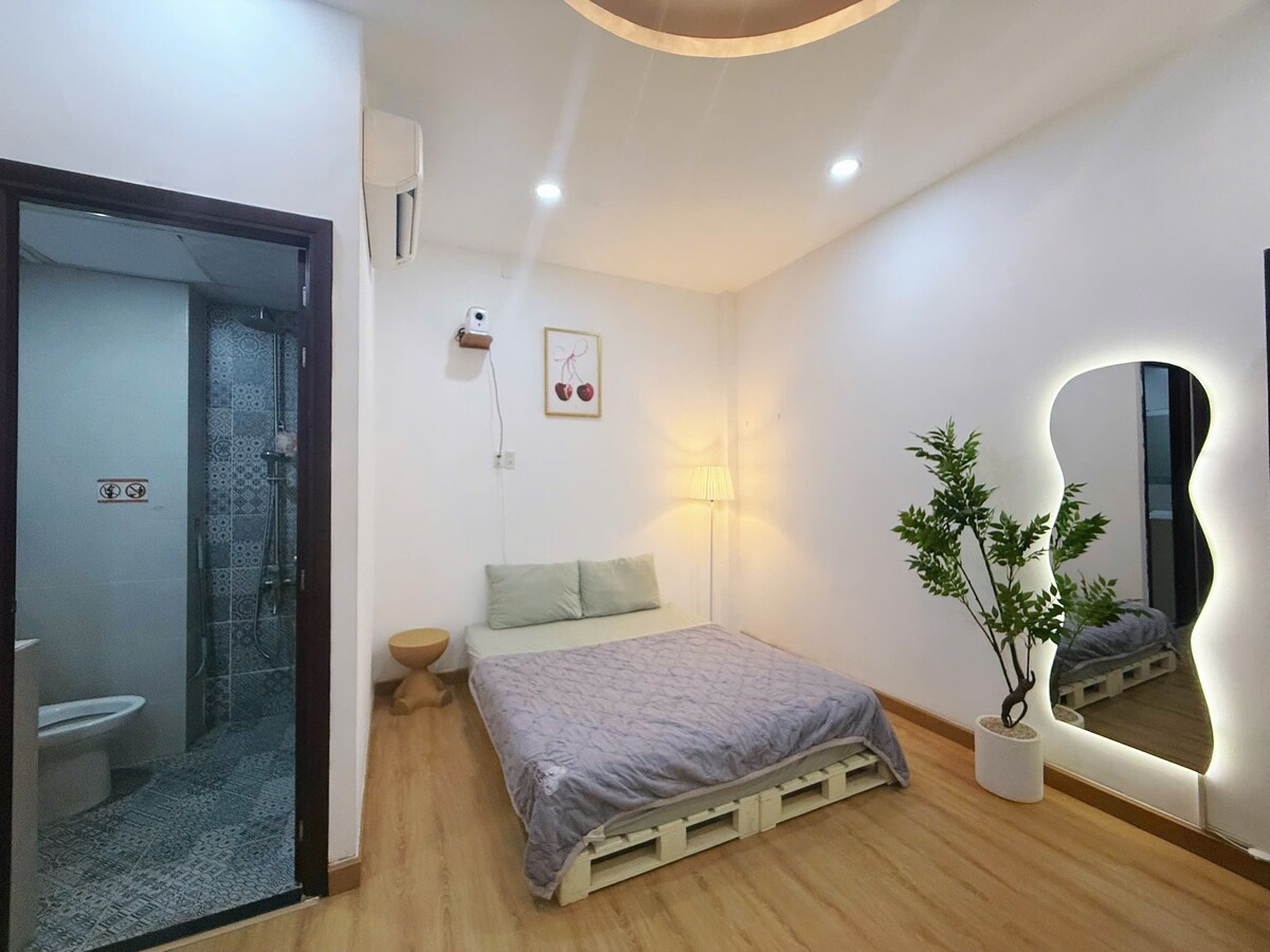 Our apartment is located right in the heart of the city, tucked away in a quiet, safe, middle-class neighborhood. Surrounded by delicious local street food, it’s the perfect spot to explore Saigon like a local. Inside, you’ll enjoy an 80" projector with Netflix — perfect for couples looking to relax and unwind. The apartment is in a private building and 100% safe. This is a no-frills, cozy hideaway for travelers who just need a simple, clean place to rest. Come crash with us! ✨❤️