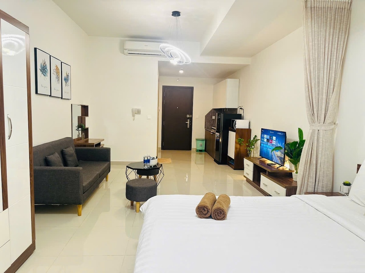 A bright Scandinavian-style balcony studio in Lavida Plus, District 7, just minutes from Phu My Hung, RMIT, SECC, and Crescent Mall. Ideal for couples, solo travelers, or business guests looking for a clean, cozy, and fully equipped stay in Saigon’s most peaceful neighborhood. Thoughtfully designed for both short and long stays, the studio offers modern comfort, natural light, and everything you need to feel at home We also offer free mid-stay cleaning for stays over 7 nights 💚