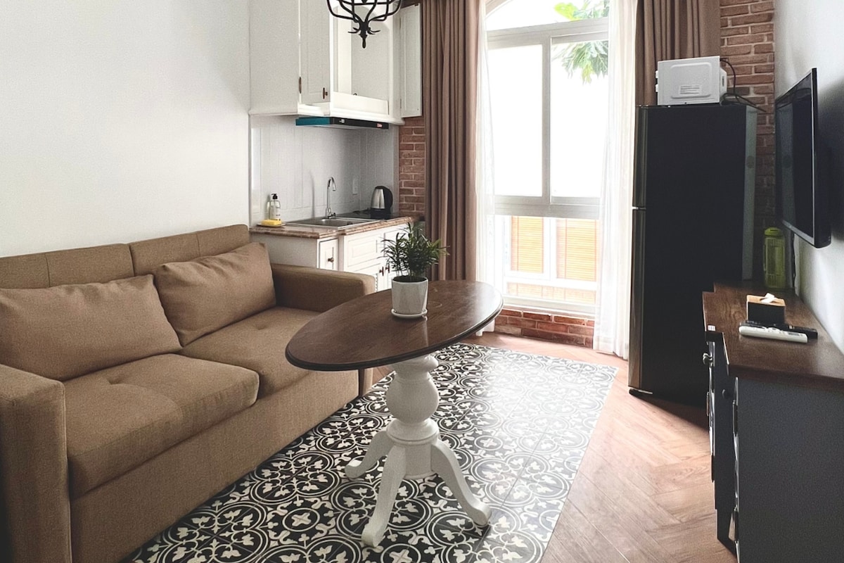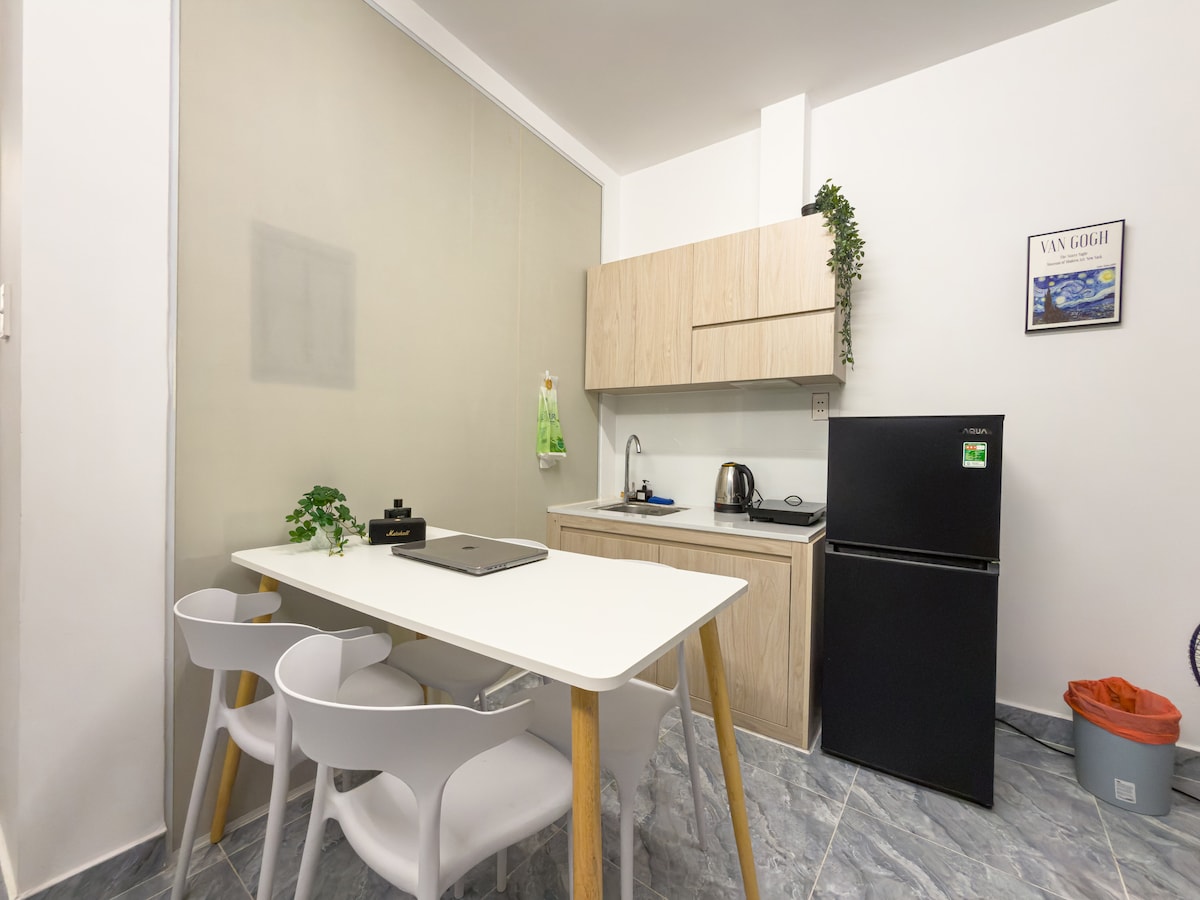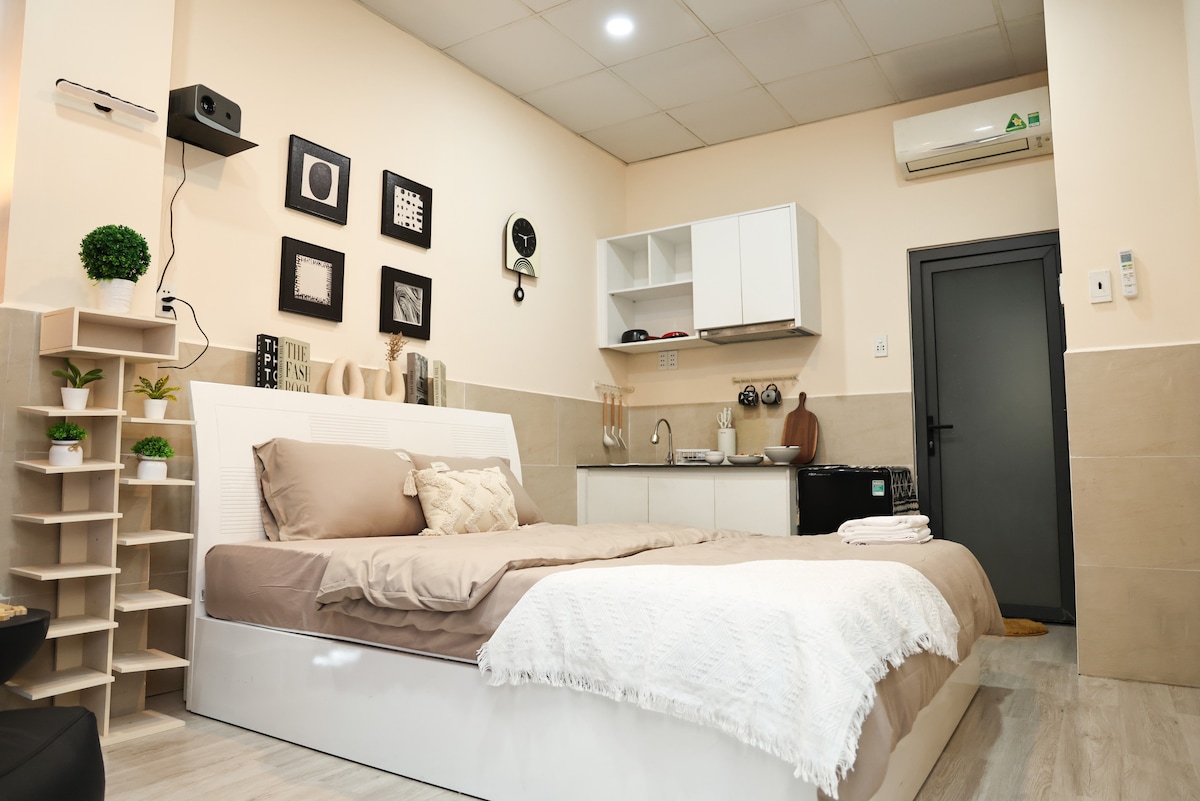 A beautifully designed studio apartment with everything you need, centrally located but hidden away just enough for a peaceful night of sleep away from the heavy city noise. Great for travelers who want to explore Saigon and looking for quality comfort and a more local experience. - Beautiful swimming pool - Free fast wifi, Cable TV - Free amenities for your living: washer, dryer, AC, fridge, hot water - Kitchen with enough tools for your cooking. Note: Not provide/support VAT invoices