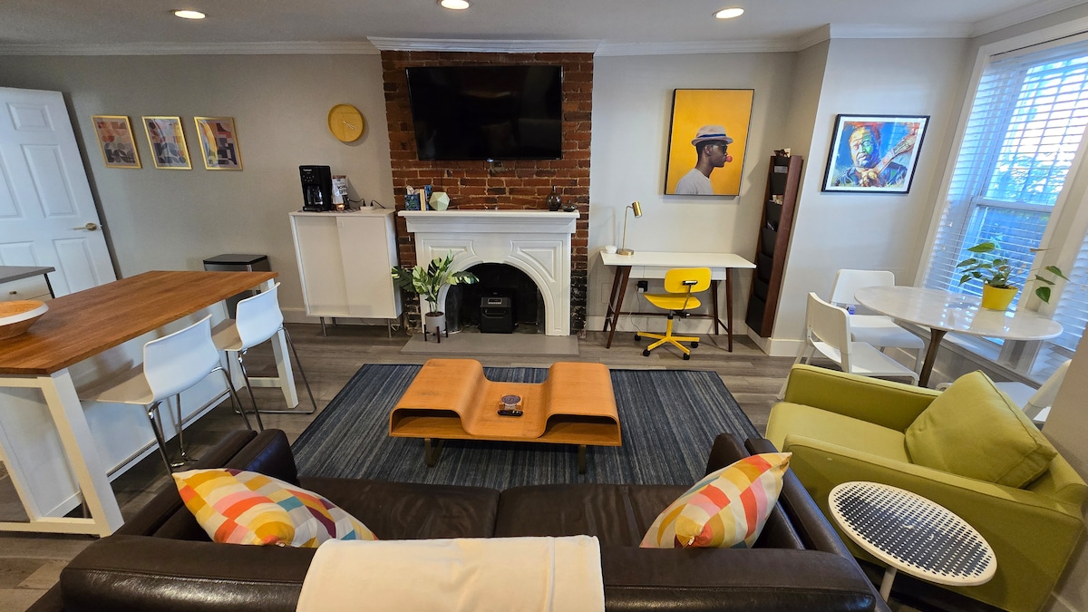 History and luxury meet in your rental which is a meticulously renovated luxury floor which includes top of the line amenities, private rooftop deck with Pergola, dual sided gas fireplace, luxurious and spacious bathroom including washer dryer, solar powered black-out blinds and leading gourmet coffee machine! We are close to Capital Hill, Brookland, Ivy City, Union Market, & H street corridor and a 10 minute Uber ride from Union Station. Free parking is provided onsite!