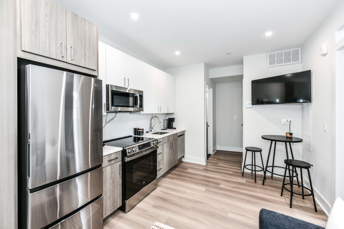 Experience the luxury and sophistication of our 1-bedroom modern apartment, designed with ultimate relaxation and convenience in mind. It offers a perfect sanctuary for couples, small families, or business travelers seeking a home-like yet refined living experience. The private sanctuary boasts one bedroom fitted with high-definition smart TVs and two cozy beds that can accommodate up to four guests. Indulge in the extraordinary cleanliness and privacy of your luxurious bathroom.