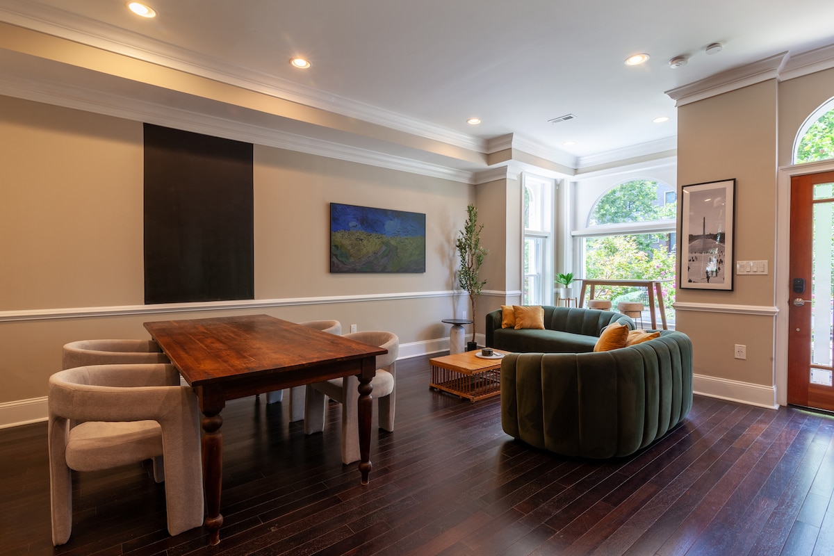 Luxury 4BR/5BA townhouse in the heart of Shaw—just a short walk to the Convention Center and Shaw/Howard Metro. Two fully self-contained units offer privacy and flexibility for large groups, families, and business travelers. En-suite bath in every bedroom plus 2 full kitchens and 2 large living/dining floors. Enjoy high ceilings, marble baths, and a prime DC location steps from restaurants, nightlife, and top attractions—perfect for conferences or exploring the city like a local.