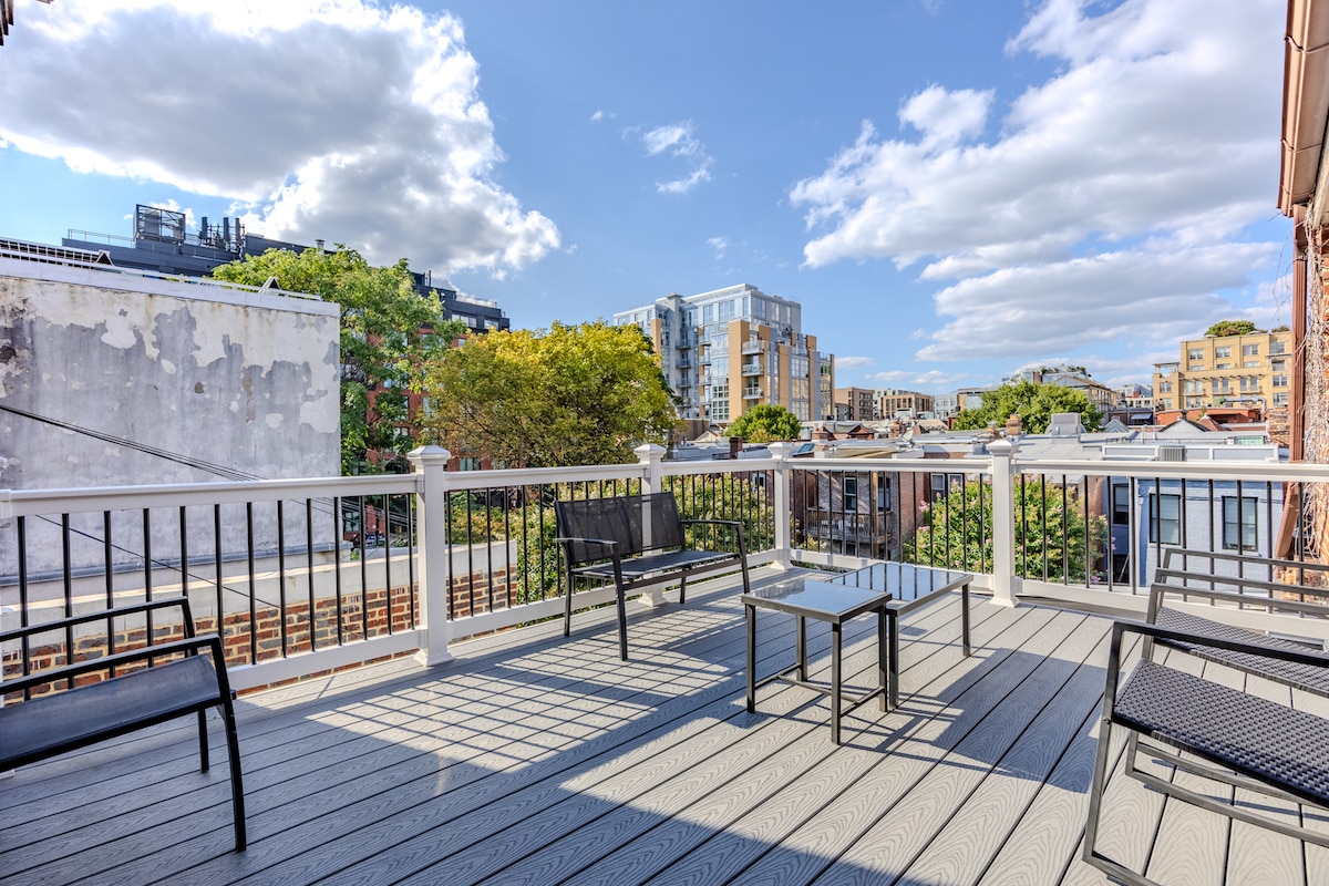 Large, luxurious modern townhouse centrally located with a Walkscore of 93, featuring a large private roof deck fully equipped with a dining table, couch, grill, and great views. This recently remodeled 4 bedroom 3.5 bath luxury townhouse is located on a quiet street, yet close to many dining options on both 14th and 11th street. The house has 4 beds and a large convertible couch so can easily accommodate 10 guests, perfect for large groups and families. Additional bed available on request.