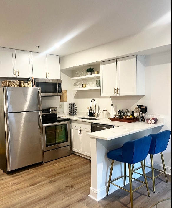 Welcome to this new, stylish beautiful ground level apartment with light filled, open floor plan, high ceilings and experience at this centrally-located historic row house. This apartment has all top of the line appliances and furniture. Fully stocked kitchen w/ everything you need to feel completely comfortable at home. There is washer/dryer, gas stove, microwave, large refrigerator, and air fryer. There is private, quiet, and secluded bedroom that looks into a peaceful backyard.