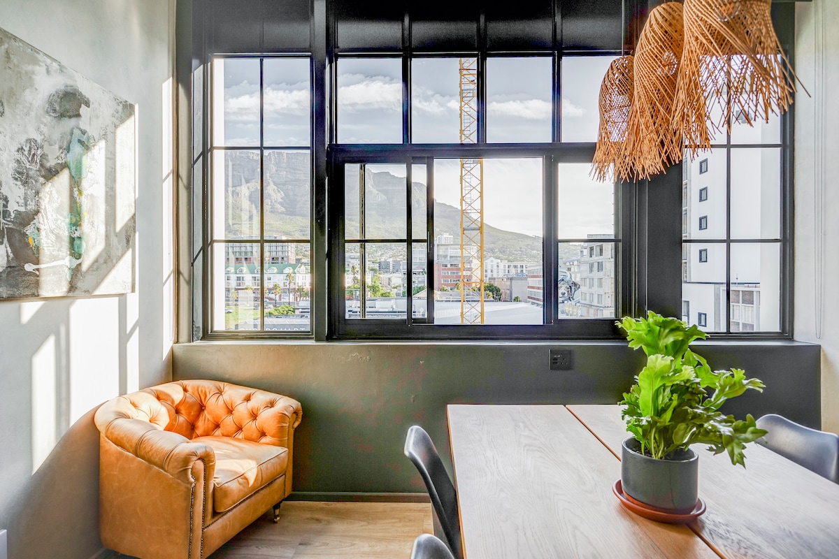 Drink in panoramas of Signal Hill from a comfy armchair in the living area of this stunning open-plan loft. Oversized windows flood the industrial, split-level layout with natural light, while wooden floorboards add warmth to the rustic ambiance! The apartment is 70m² / 753 sq. ft. with high-end finishes throughout. Beautiful views of Signal Hill, a glimpse of Lion's Head & Bo-Kaap - enjoy watching the paragliders on Signal Hill. Back-up power inside the apartment! Fast Wi-Fi up to 750 Mbps.