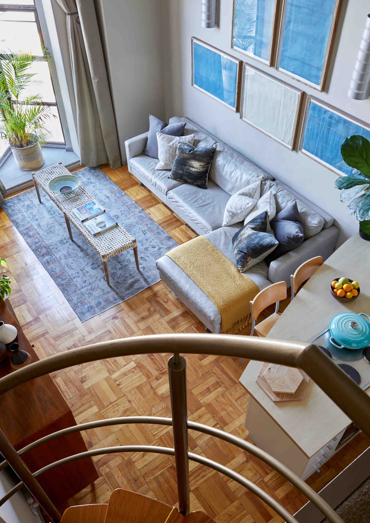 The vast open-plan apartment features soaring ceilings, a blend of industrial finishes and boutique design, and pops of color throughout, as well as a spiral staircase to a raised bedroom with a bathroom. The main area has separate bedroom with a huge bathroom. Extremely spacious and bright. Floor to ceilings are 4,5 meters. It’s well equipped with custom made furniture, art books, and fast internet/Netflix premium. It's located in of East City, the (newest) trendy area in central Cape Town.