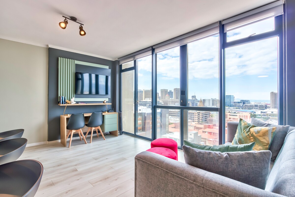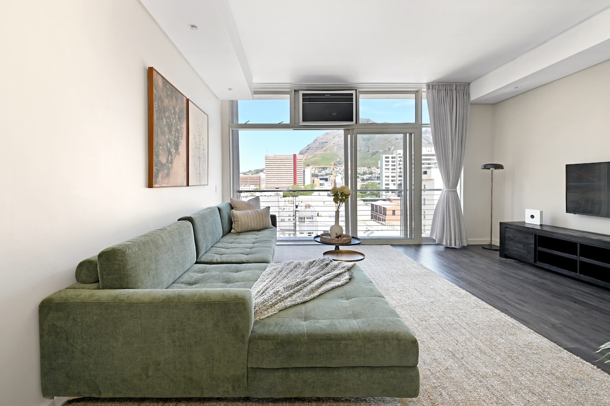 THE BEST VIEWS - in the middle of Cape Town's CBD. The Lookout is a pristine 62 sqm, 1.5 bedroom top floor apartment in the heart of Cape Town's CBD, with the rare quadruple view - enjoy uninterrupted views of the entire city bowl, Table Mountain, Lion's Head and the Harbour Bay. All just within 500m walking distance to the town centre. Tastefully decorated with top-end, pristine finishes and filled with art and greenery, The Lookout offers you a unique experience in Cape Town you won't forget.