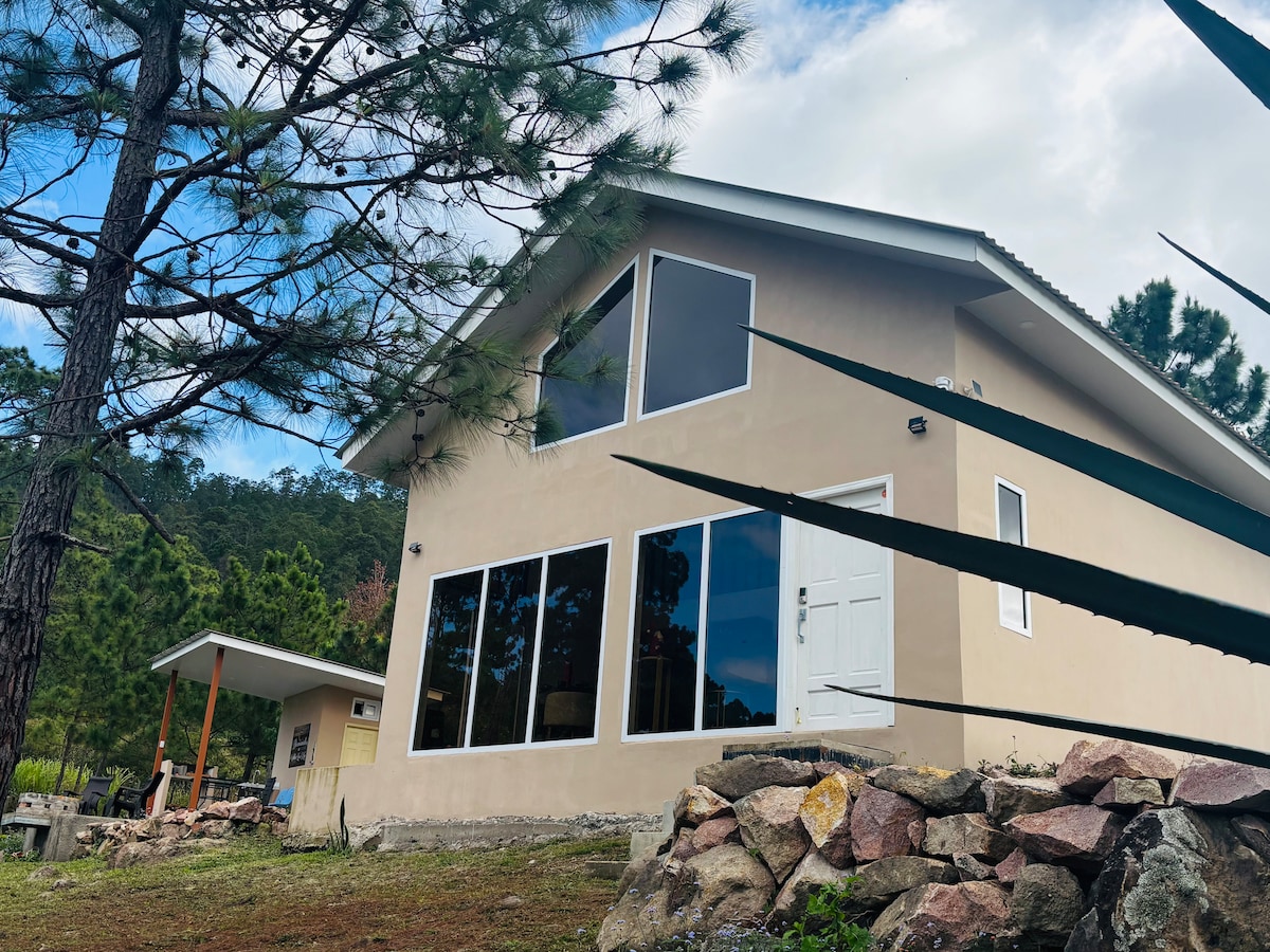 🙏SOLO PARA FAMILIAS: Casa Jardín es un lugar acogedor situado a las afueras de Valle de Ángeles, para disfrutar de momentos de máxima tranquilidad y privacidad en familia, lejos del bullicio de la ciudad. La cabaña consta de un extenso salón comedor, una amplia y funcional cocina, un dormitorio principal con cama queen y baño privado, 3 sofás camas. En los exteriores se puede disfrutar de zonas de estar, área de barbacoa, fogata, baños, hermosos jardines, cancha futbolito y arboles frutales.