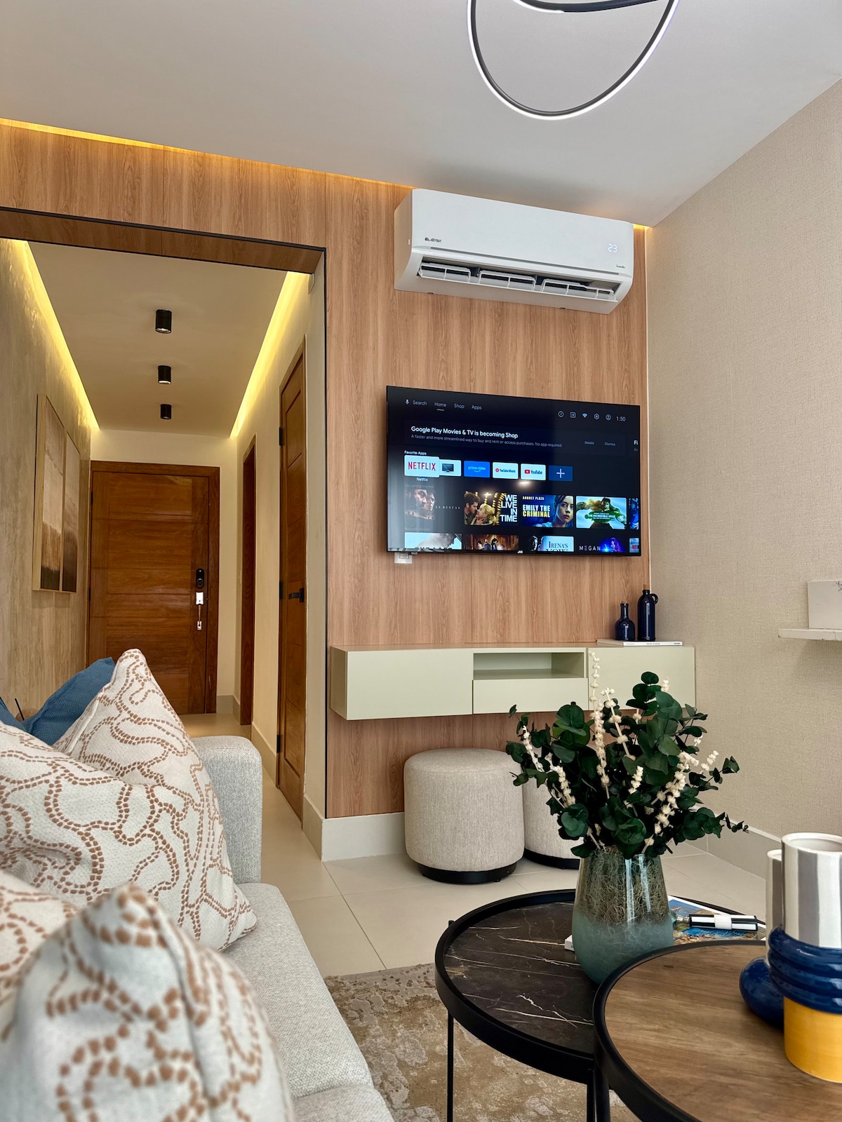 Bienvenido a tu nuevo hogar en Santo Domingo; este espacio ha sido diseñado para proporcionarte una experiencia única. WIFI RÁPIDO SALA -Sofá grande -Aire acondicionado -Smart TV -TERRACE/BALCONY Impresionantes vistas de la ciudad DINING / COCINA -Asientos para dos -Refrigerador/Estufa -Utensilios HABITACIÓN -Cama king. -Smart Tv -Aire acondicionado -Baño -Piscina y barbacoa -Lobby -GYM -Dos ascensores -1 parqueo -Smart Lock ¿Qué estás esperando? Reserva tu estadía el día de hoy!