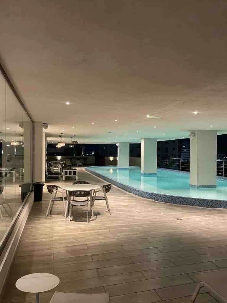 🌆Disfruta de este apartamento en el 11vo piso, totalmente equipado para ofrecerte una estadía de lujo con todas las comodidades que mereces. 📍A pocos metros encontrarás plazas comerciales, restaurantes, salones de belleza, centros médicos y farmacias. 🏊♂️Área social con piscina, zona BBQ y gimnasio, ideales para relajarte o mantenerte activo durante tu estadía. 🔒 Comodidad y seguridad El edificio cuenta con lobby elegante y seguridad 24/7, para que te sientas protegido en todo momento.