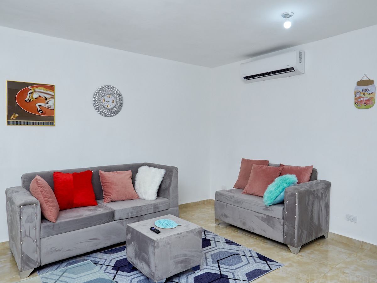 Disconnect from your worries in this spacious and serene space. House in the center of the city of Santo Domingo, very close to the colonial zone, the plastic surgery clinic and the presidential house. We have: * (Room 1) Main room with its bed, closet, air conditioning and bedside tables. *(Room 2) Room with its bed, air conditioning, nightstand. * 2 bathroom * Equipped kitchen * Living room equipped and with air conditioning *dining room * WIFI