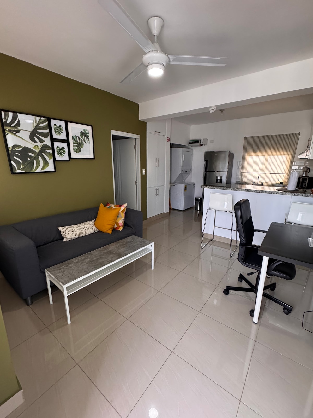 Modern apartment in a luxury high-rise on the 14th floor, centrally located in Santo Domingo. Features 1 bedroom, bathroom, living room, full kitchen, laundry area, balcony, and 2 covered parking spaces. Sleeps up to 4. Building amenities: pool, gym, social terrace, kids’ area, jogging track, BBQ, sauna, and spa. 24/7 security. Perfect for families or business trips.
