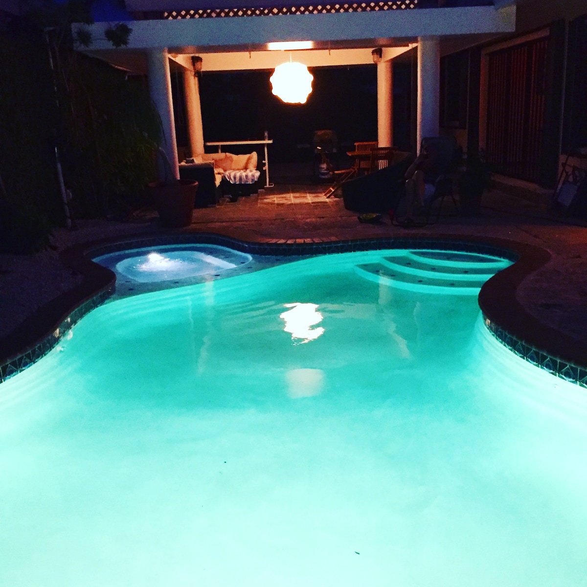 Welcome to our cozy guesthouse! In a quiet neighborhood, this 10.5 x 12.5 ft² studio offers everything you need: Indoor Tub and spa: Unwind after a day of exploring in your own spa-like oasis. Kitchenette for preparing light meals. Queen-Sized hybrid Bed: Sink into comfort and wake up refreshed. Entertainment: Watch channels with a 42” flat-screen TV. Free Street Parking: No hassle finding a spot for your car. Solar panels: always with power! Just an 18-minute drive to and from the airport.