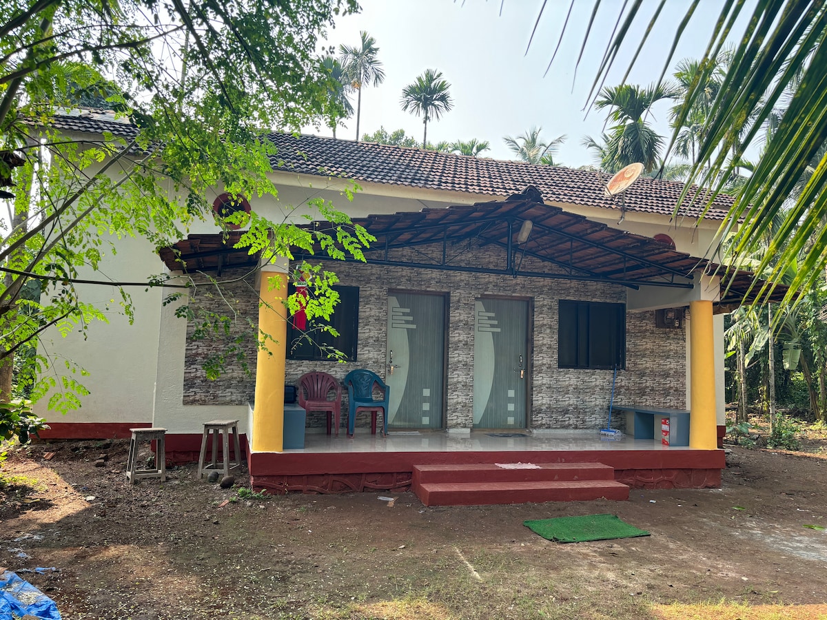 * Families preferred. No smoking or drinking. * Escape to our cozy, pet-friendly homestay in Shrivardhan, just a few minutes from the beach. The space is most comfortable for 4 guests due to a single bathroom, but we can accommodate up to 6 adults. Enjoy air-conditioning, inverter backup, TV and Wi-Fi for a comfortable and convenient stay. While we don’t offer food or silverware, our neighbours prepare tasty Konkani vegetarian and non-veg meals, which will be served in our backyard.