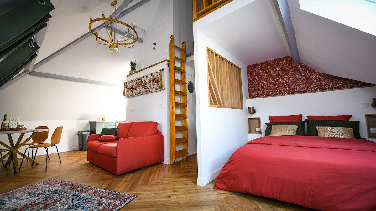 Magnifique appartement, à 50m de la mer et 250m du centre ville, entièrement rénové en 2024. Ce qui le rend unique : son esprit loft avec son toit cathédrale, sa luminosité, ses vues mer au loin et le parking privatif (bien appréciable en haute saison) ! Situé au 2ieme et dernier étage, sans ascenseur Idéal pour un couple cherchant le confort, ou une petite famille (max 4). 2 chambres, dont 1 ouverte en mezzanine (attention obscurité imparfaite) Linge fourni, Internet haut débit