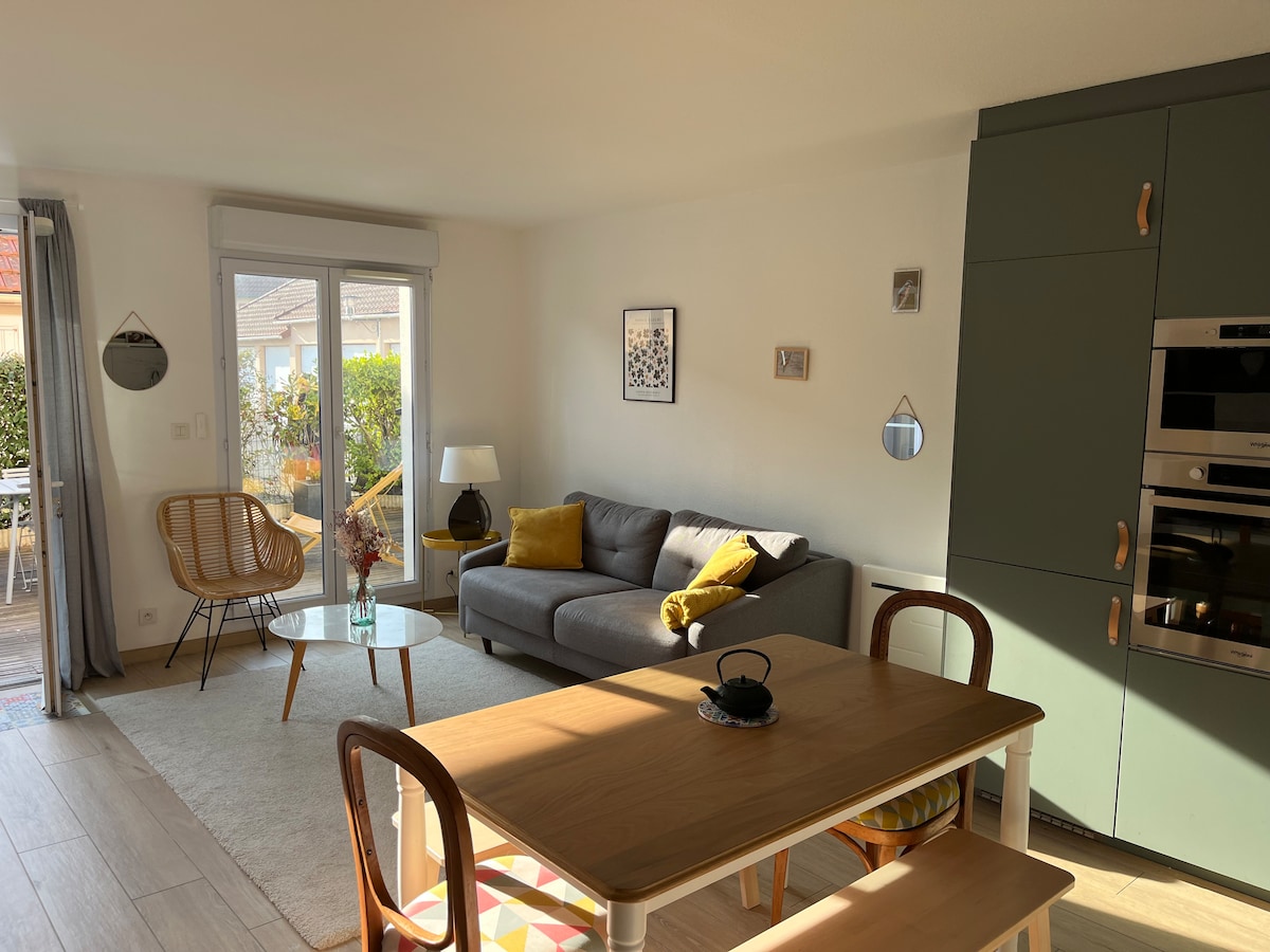 Très bel appartement calme et entièrement refait à neuf avec balcon aménagé situé côté cours. Le logement peut accueillir 4 personnes. L’appartement est bien aménagé et agréable. Totalement équipé, sécurisé et impatient de vous accueillir pour votre prochaine escapade en famille. Il est muni d’une place de parking privative situé en parking couvert et sécurisé par badge ainsi que des emplacements de stationnement libre et gratuit à proximité. Taille canapé convertible (146x200)