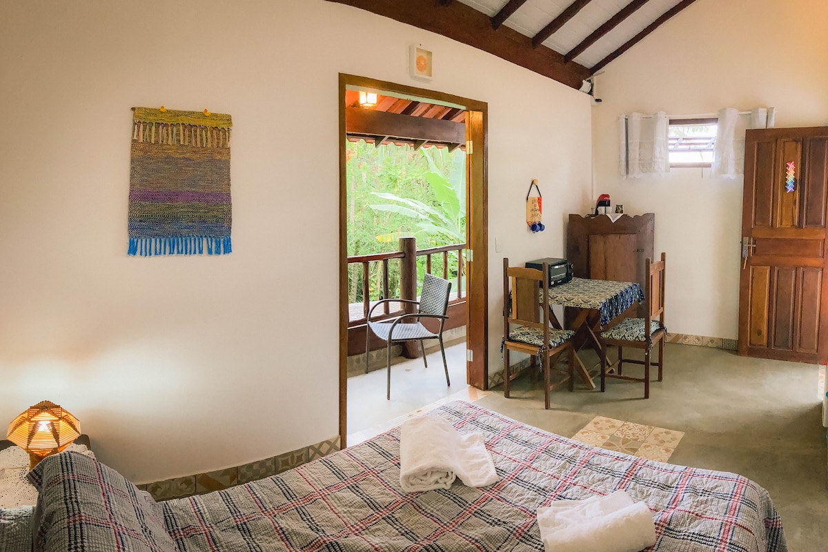 Paisagem encantadora, lugar romântico em meio à natureza, cercado por montanhas, com cachoeira dentro da propriedade e outras que dão para ir a pé. Lugar ideal para descansar e curtir a natureza. O chalé fica a 6 km do Patrimônio da Penha e a 16 km de Pedra Roxa. A cidade mais próxima (Santa Marta) fica a 4 km onde tem supermercado, posto de gasolina, farmácia e restaurante. Temos wi-fi via rádio ( área rural). O chalé fica apenas a 1,5 km do asfalto ( estrada não pavimentada).