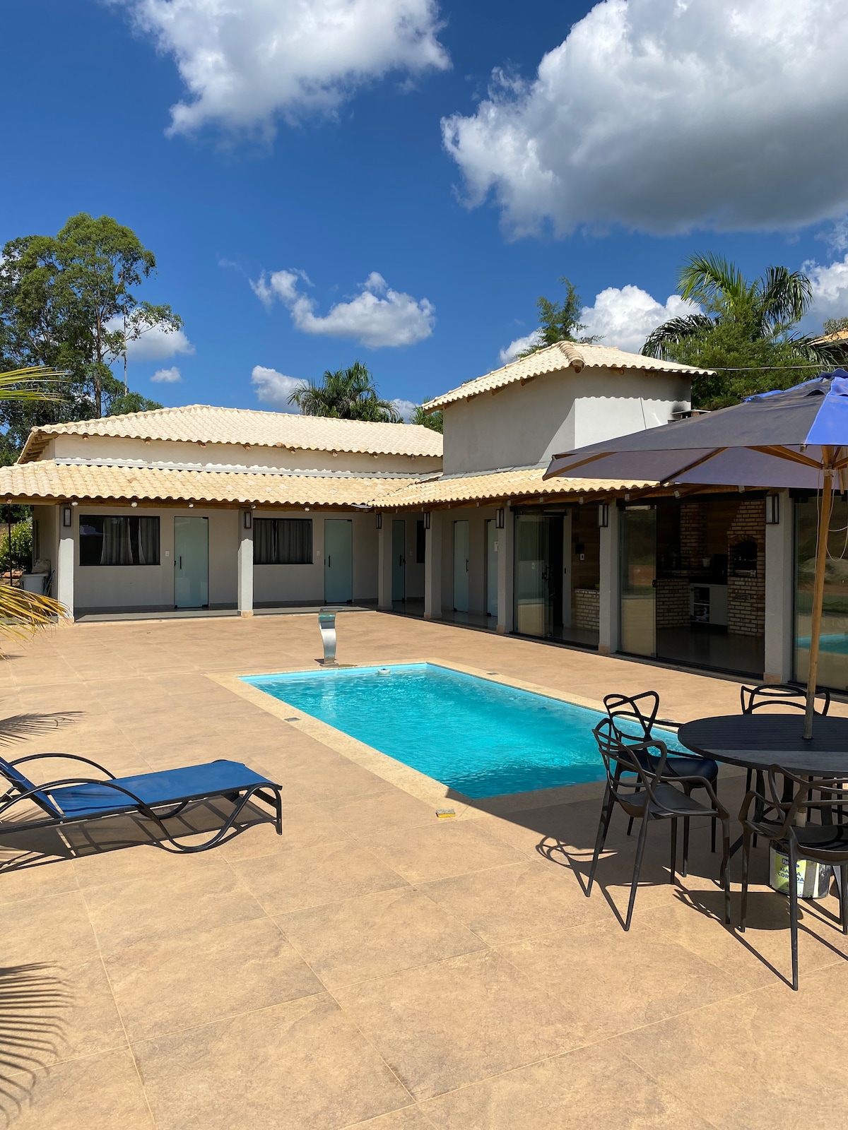 Nosso refúgio é tranquilo, cercado pela natureza e com uma estrutura excelente! São 3 quartos (2 suítes) e 5 banheiros, ideal para famílias ou grupos de amigos. A sala é ampla e confortável, a cozinha é moderna e bem ventilada, equipada com tudo que você precisa. Mas o destaque do nosso sítio é sem dúvida nossa área externa com jacuzzi aquecida, churrasqueira, mesa de jogos e iluminação moderna. Não perca a oportunidade de desfrutar deste lugar de muita paz, mas também perfeito para resenha!