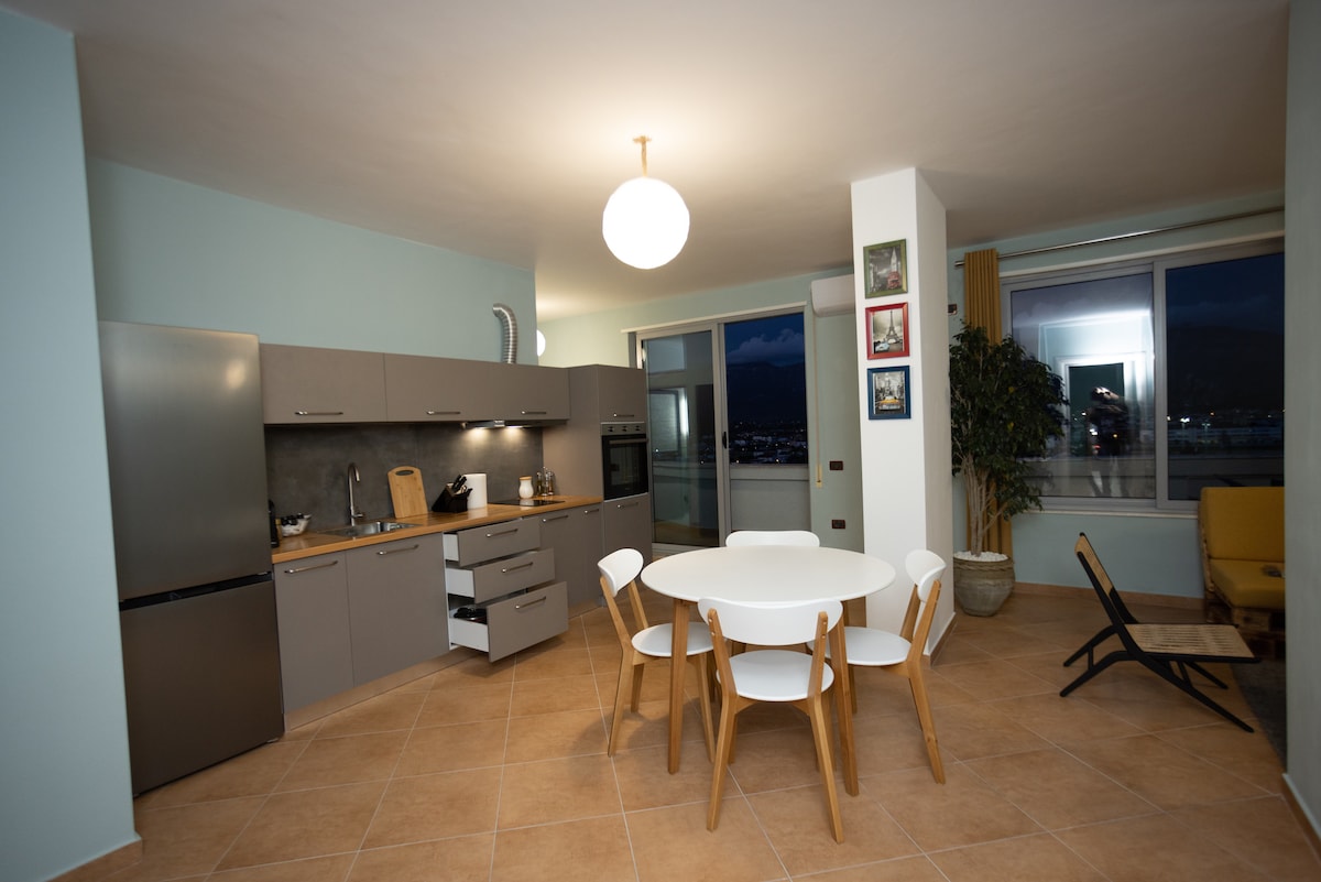 ☀️With 180 degrees panoramic views from east to west.The apartment is 7.9 km from airport TIA ✈️and 8.8 km from center of Tirana🌇 It’s easy to find in center of Kamza Town, the main road that lead to Tirana. On the first floor there are a series of facilities such as Bank, Exchange , supermarkets, Coffee, Pharmacy stores, bus stations etc. Easily visited places are Boville Lake, Kruja Castle, Preza Castle the center of Tirana. The lift is taken up from the 3rd floor.(1,2 floors are business space)