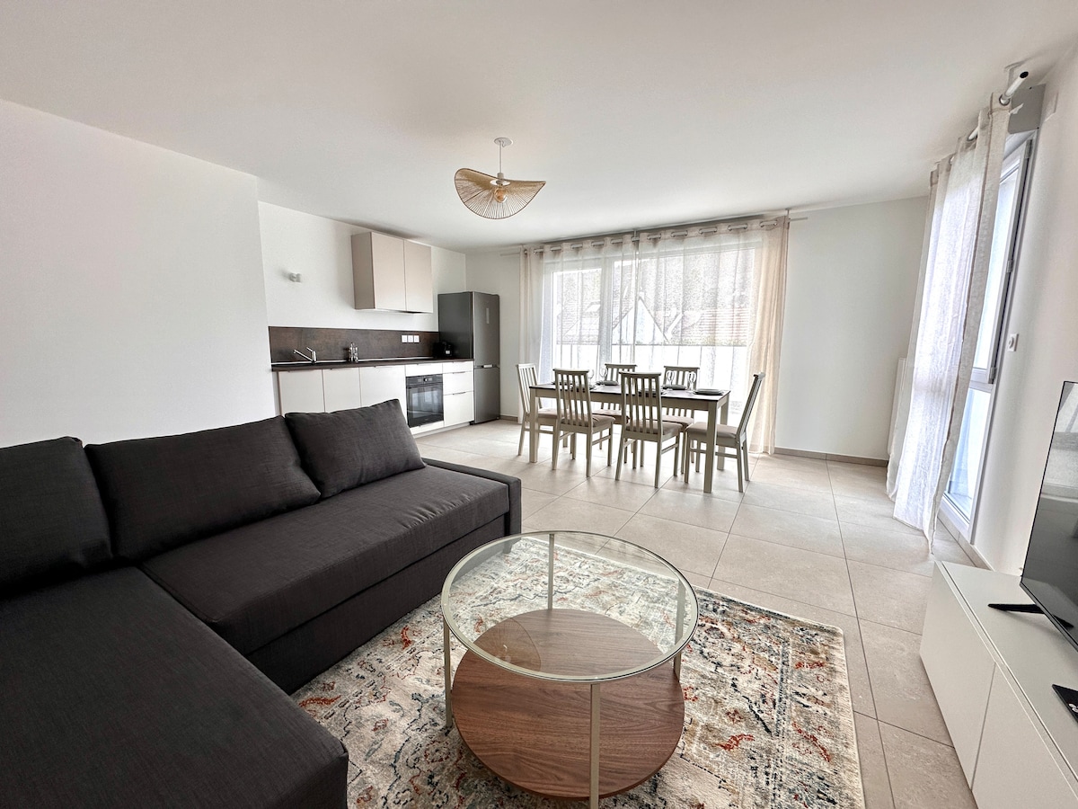 Welcome to our elegant apartment with two terraces in charming Divonne-les-Bains, just minutes from the Swiss border. Whether you're here to explore the Jura mountains, enjoy the casino, golf, or simply relax at the thermal spa, this cosy, fully equipped flat offers the perfect base. Peaceful and stylish, ideal for couples, solo travellers, or professionals, come for a weekend or settle in longer. You’ll feel right at home and everything is nearby!