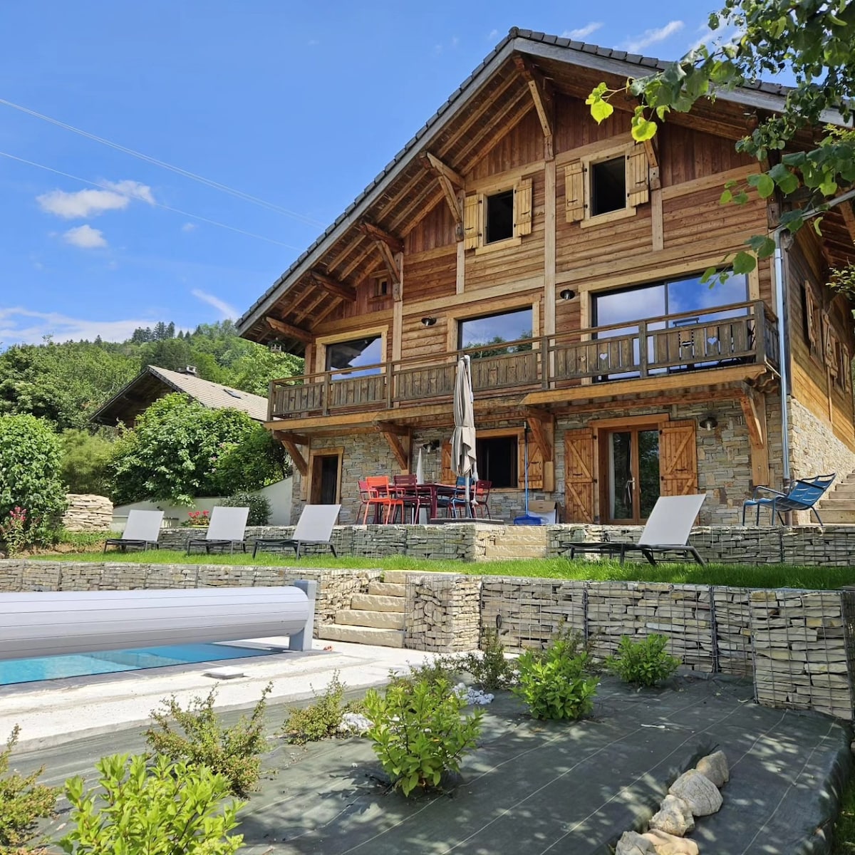 40 min drive from Geneva airport and 25 min from Annecy's lake, enjoy a distinct experience in a charming cottage with private SPA (available all year) and heated pool, within a beautiful natural scenery. Share a unique stay, as a couple, with friends , including best services: Champagne as a welcome gift, unlimited SPA, air conditioning, bathrobes, slippers, fully equipped kitchen, Wifi, flat screen with Netflix, welcome products, garden of 200sqm at your disposal...