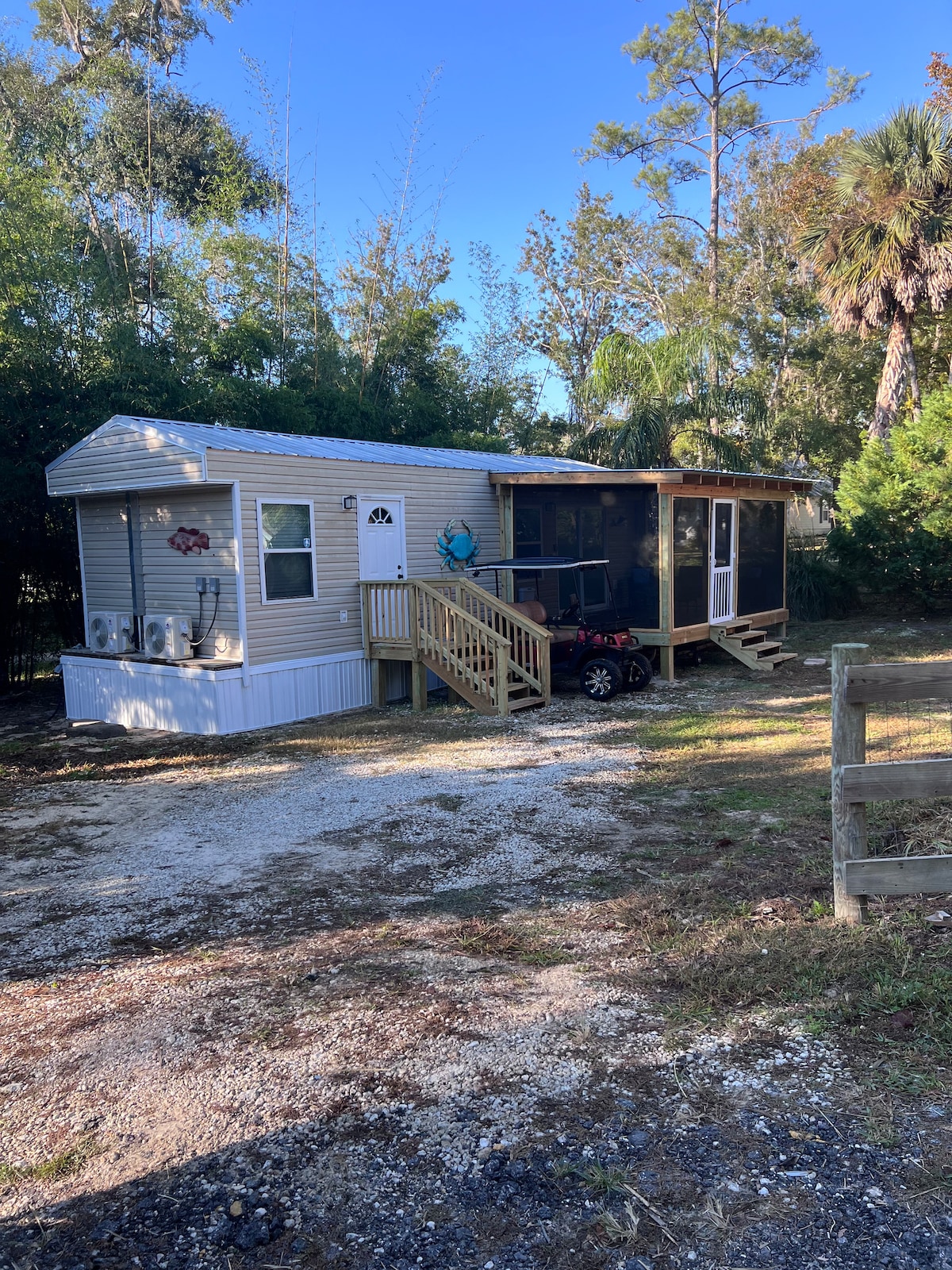 Escape to our charming 200 sq ft tiny home near Steinhatchee, FL – an ideal retreat for fishing couples or those seeking a serene nature getaway. This cozy haven accommodates up to 3 guests. One queen bed and ottoman converts to twin bed. Located just 2.5 miles from the Steinhatchee boat ramp and downtown area, it's the perfect spot for a peaceful fishing trip or a small family vacation surrounded by the beauty of nature. You won’t forget your time in this romantic, memorable place.