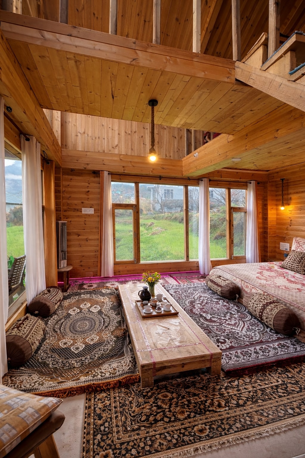 For those tired of following usual tourist trails & seeking out unique n less crowded destinations, Get yourself off the grid & indulge yourself in unforgetting experience @ our luxury 2-bedroom aptmnt that has got stunning aesthetics, offers unmatchable tranquility & opportunity to fully immerse oneself in the present moment. Situated at a height of 7500 ft, it offers breathtaking valley view with snow-dusted apple orchards, pine / deodar trees, sprawling mountain range & meandering beas river!
