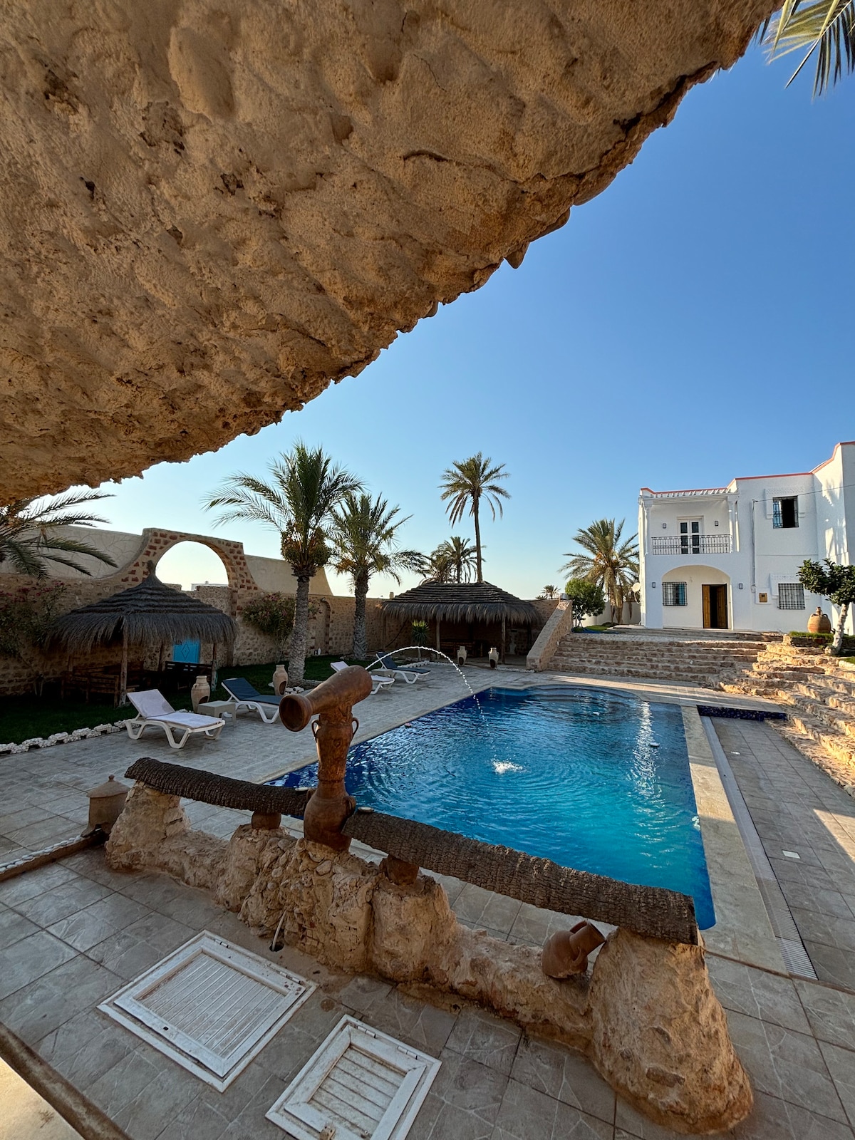 Une villa de luxe, sans vis à vis, baignée de lumière. Profitez des 300 jours de soleil par an de l'ïle de Djerba au sein d'une maison spacieuse à seulement 10 minutes de la plage. Cuisine totalement équipée (dont cafetière Nespresso). 3 grandes suites avec salles de douche à l’italienne. Grande piscine avec cascade et jacuzzi intégré, privée et sans vis-à-vis. Le + éco-friendly : la villa est équipée de panneaux solaires garantissant un bilan électrique quasi nul !